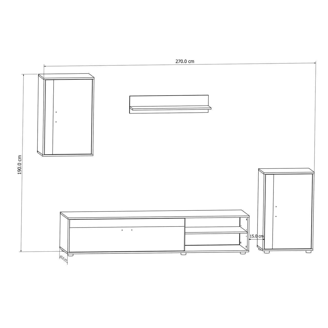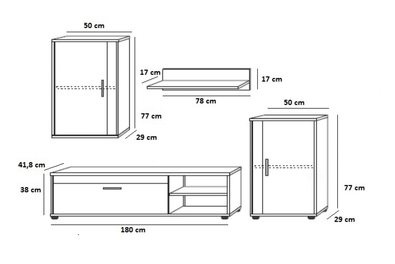 Mobilier pentru Living Oslo III, Bedora, 1 x Polita, 1 x Comoda, 1 x Dulap, 1 x Dulap suspendat