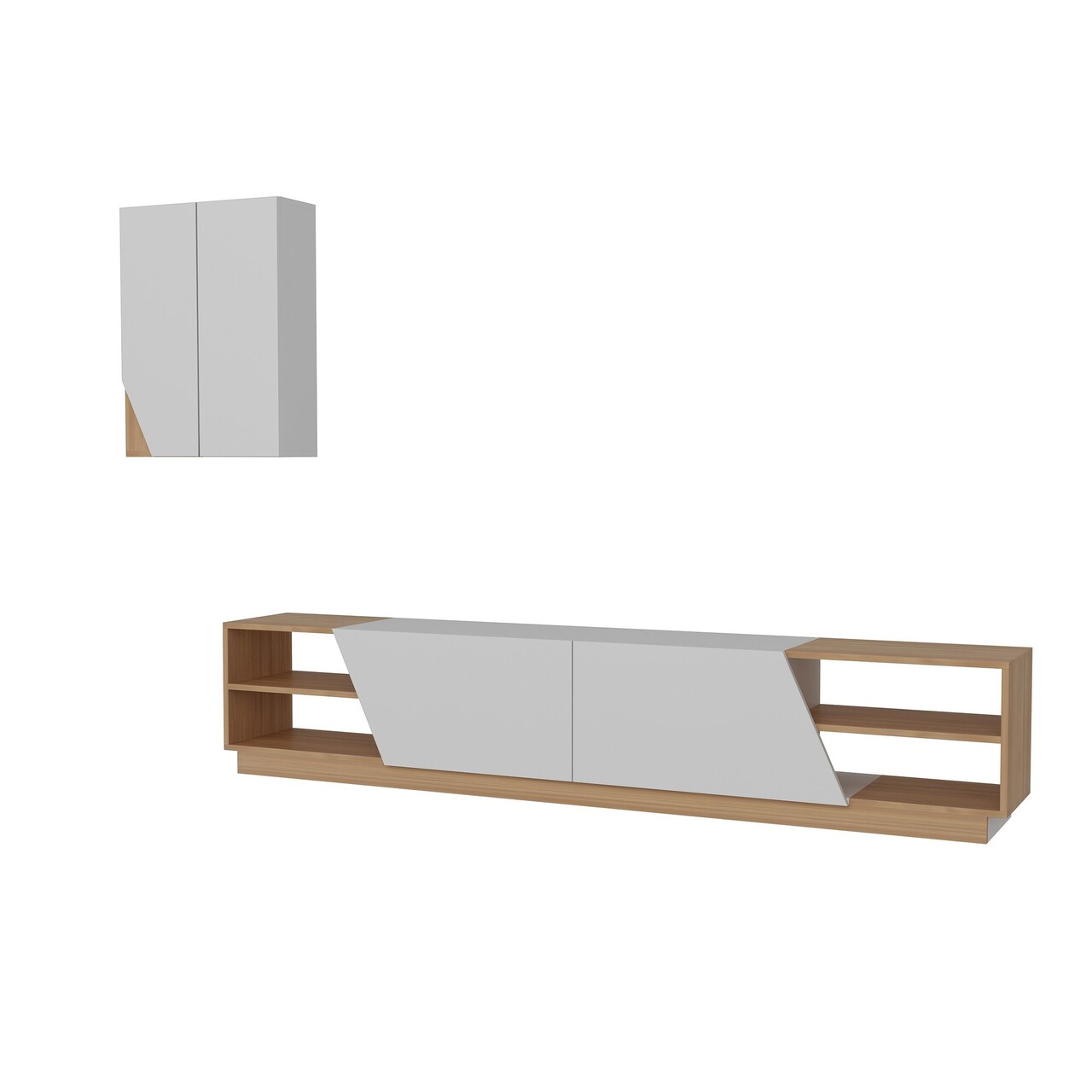 Mobilier pentru living Zebra, Decorotika, 3 piese, 240x37.5x47 cm, alb/natural