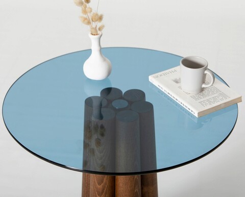 Masuta de cafea, Neostill, Thales Walnut, Albastru, 50x50x50 cm, Sticla temperata, Nuc / Albastru