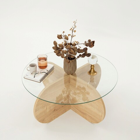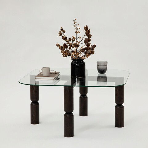 Masuta de cafea, Neostill, Thales, 50x50x50 cm, Sticla temperata, Nuc / Transparent