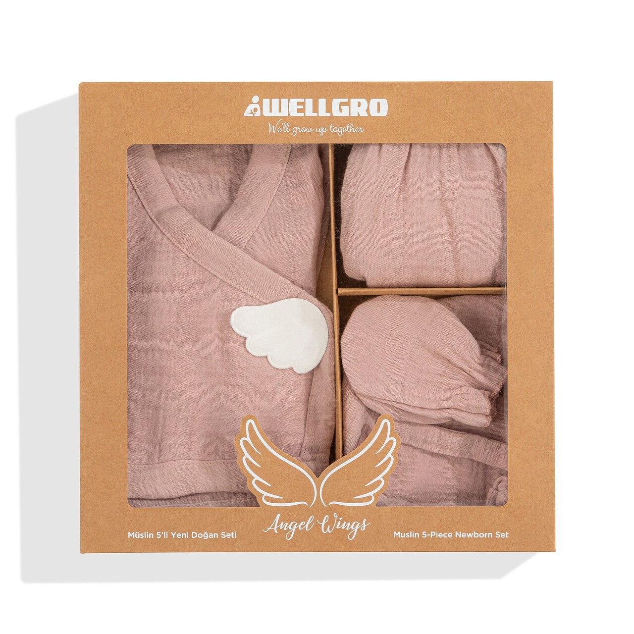 Newborn Baby Set (5 Pieces), Wallxpert, Angel Wings, Bumbac, Roz