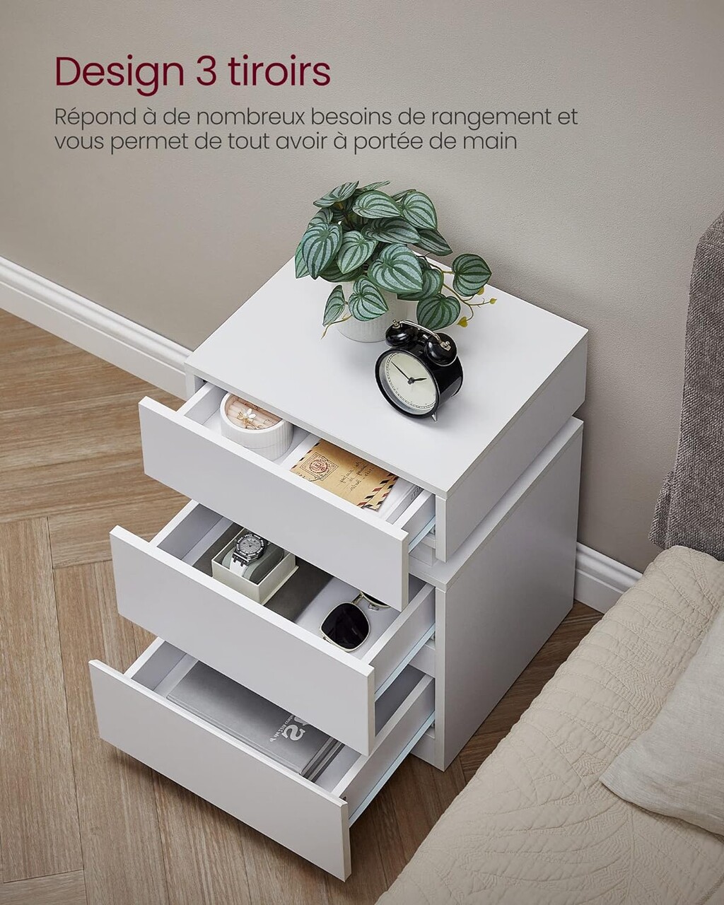 Noptiera 3 sertare si iluminare LED, Vasagle. 40x35x55 cm, MDF, alb
