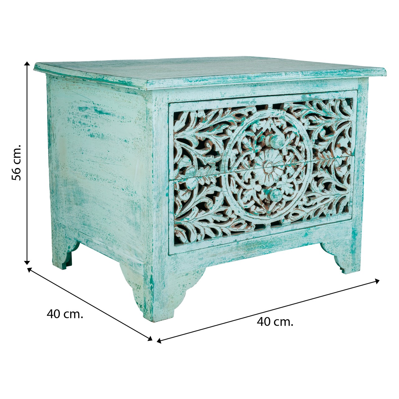 Noptiera Creaciones Meng, 40x40x56 cm, lemn de brad, verde antic