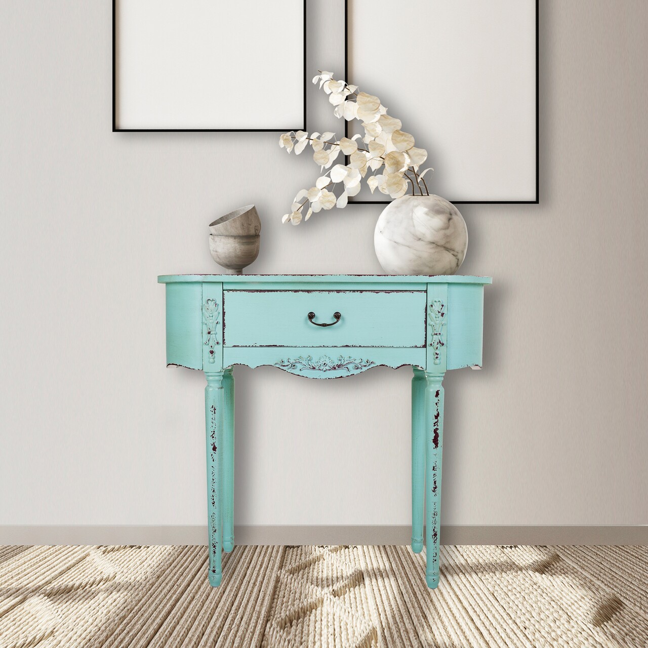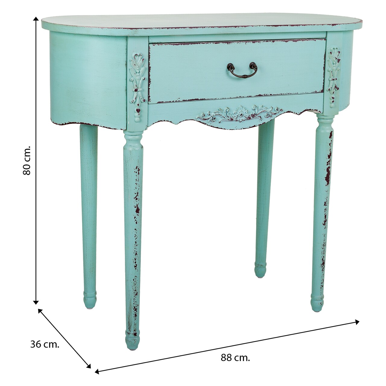 Noptiera cu 1 sertar Antique Blue, Creaciones Meng, 88x36x80 cm, lemn de brad, albastru antic