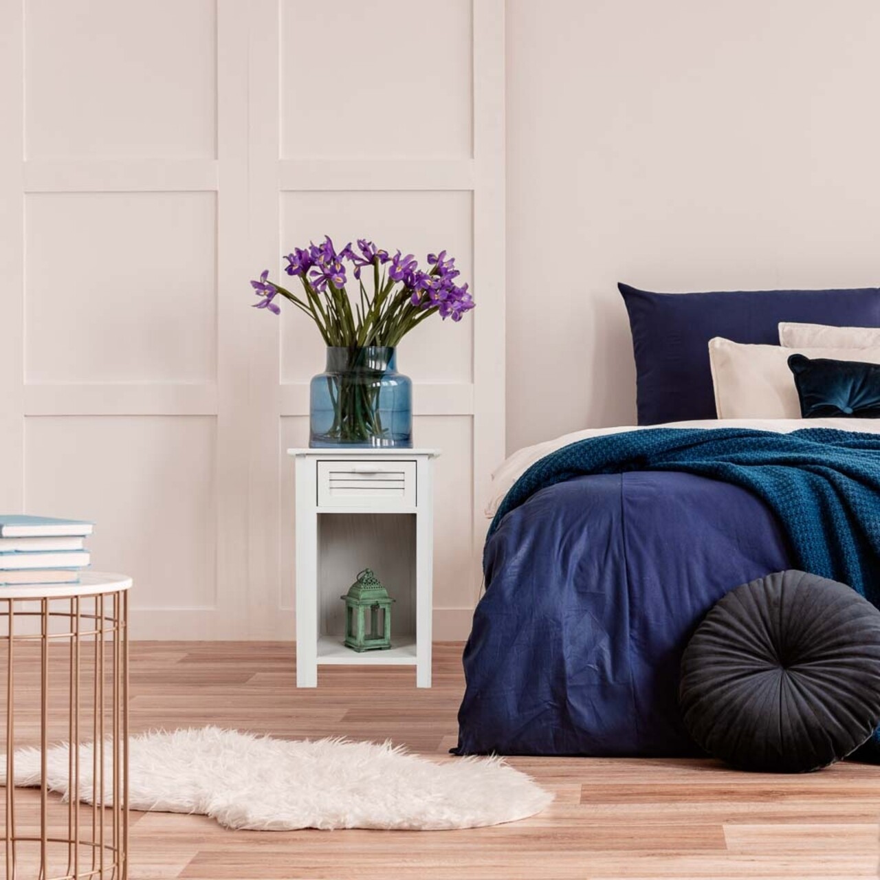 Noptiera cu 1 sertar, Elisa, Creaciones Meng, 35x35x63 cm, lemn de paulownia, alb