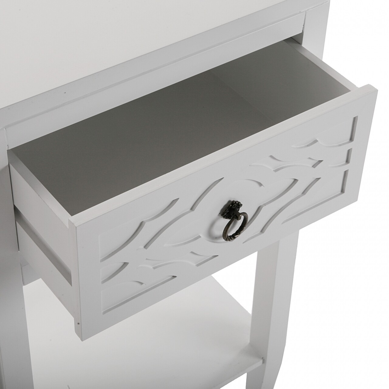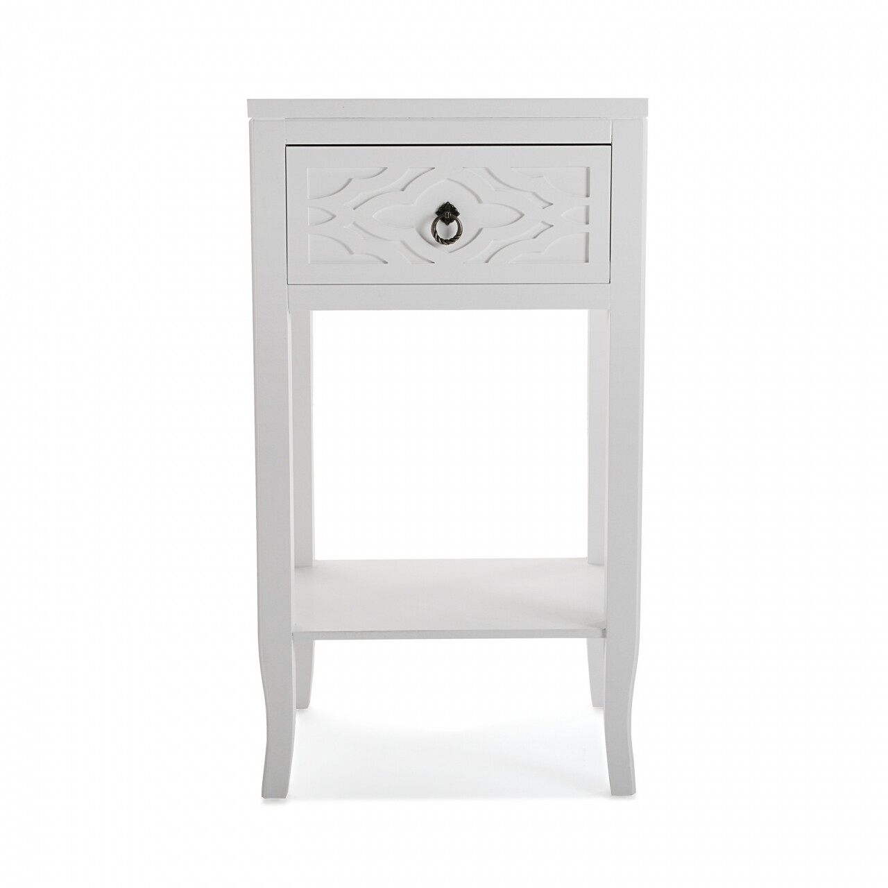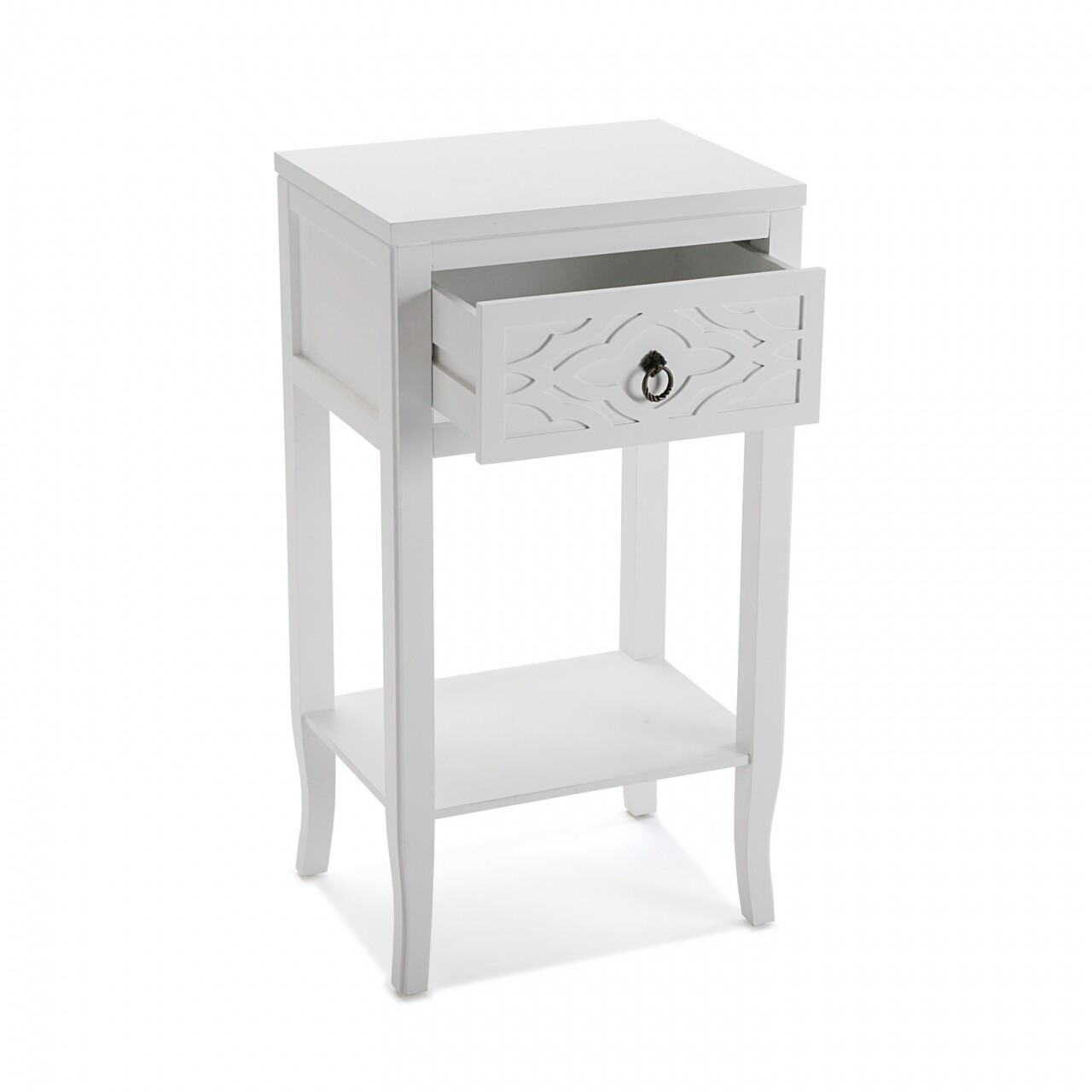 Noptiera cu 1 sertar si raft Arabesque, Versa, 38x29x70 cm, MDF, alb