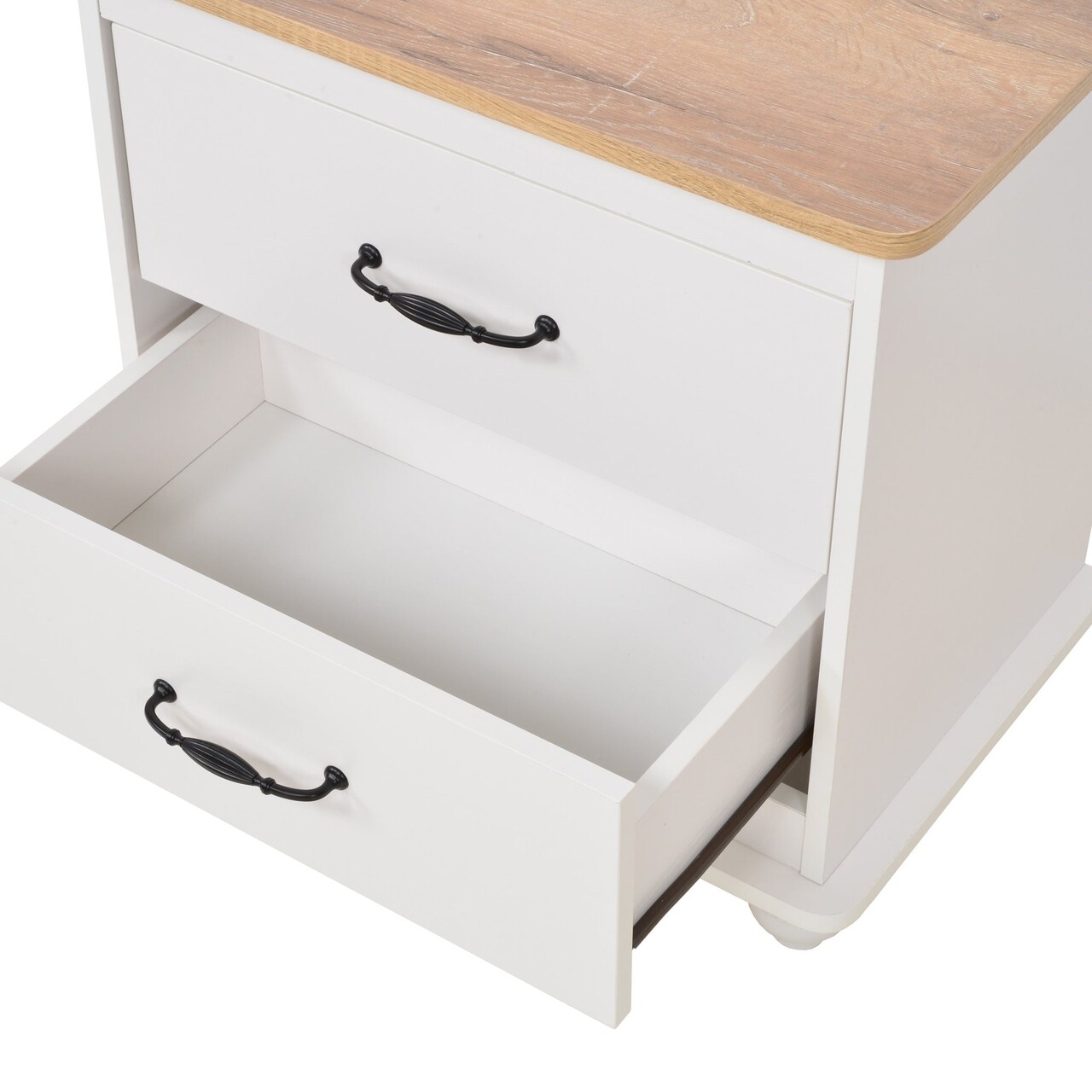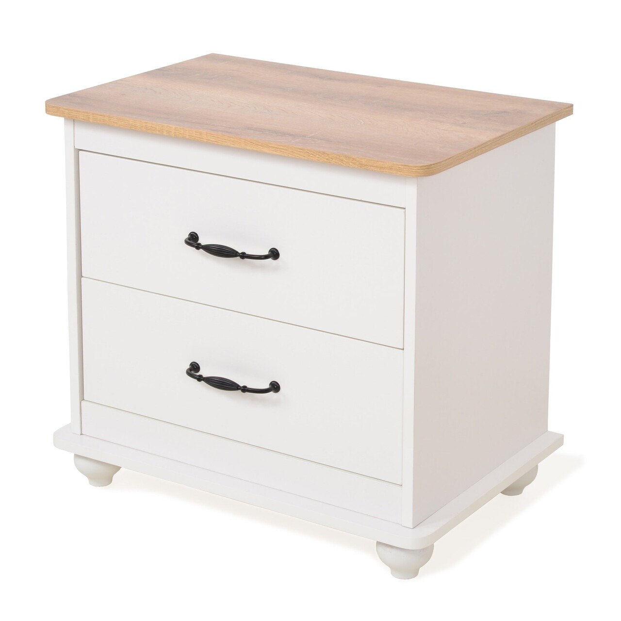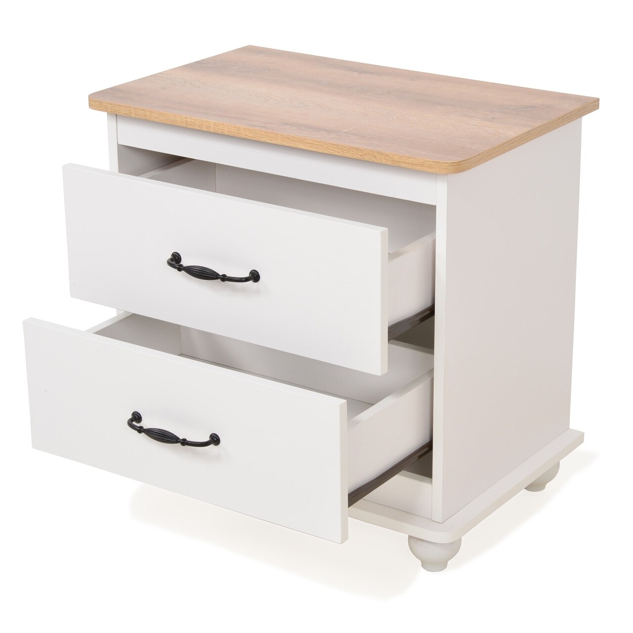 Noptiera cu 2 sertare, Carly, L.60 l.39 H.59, mdf/pal, alb/crem