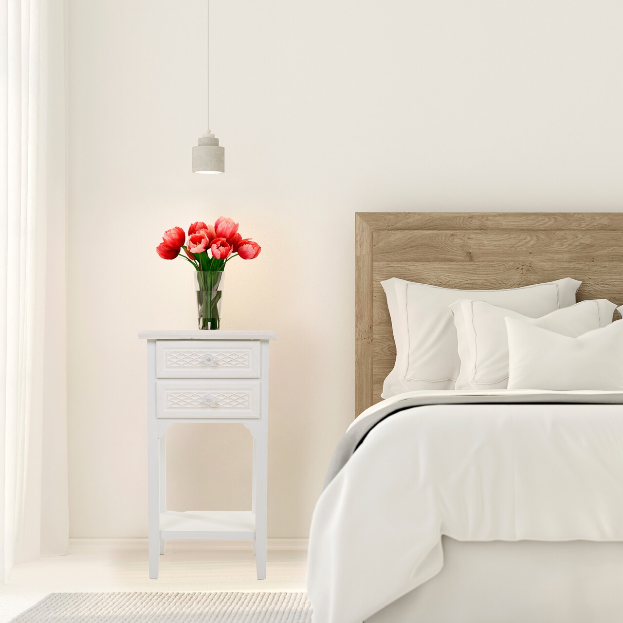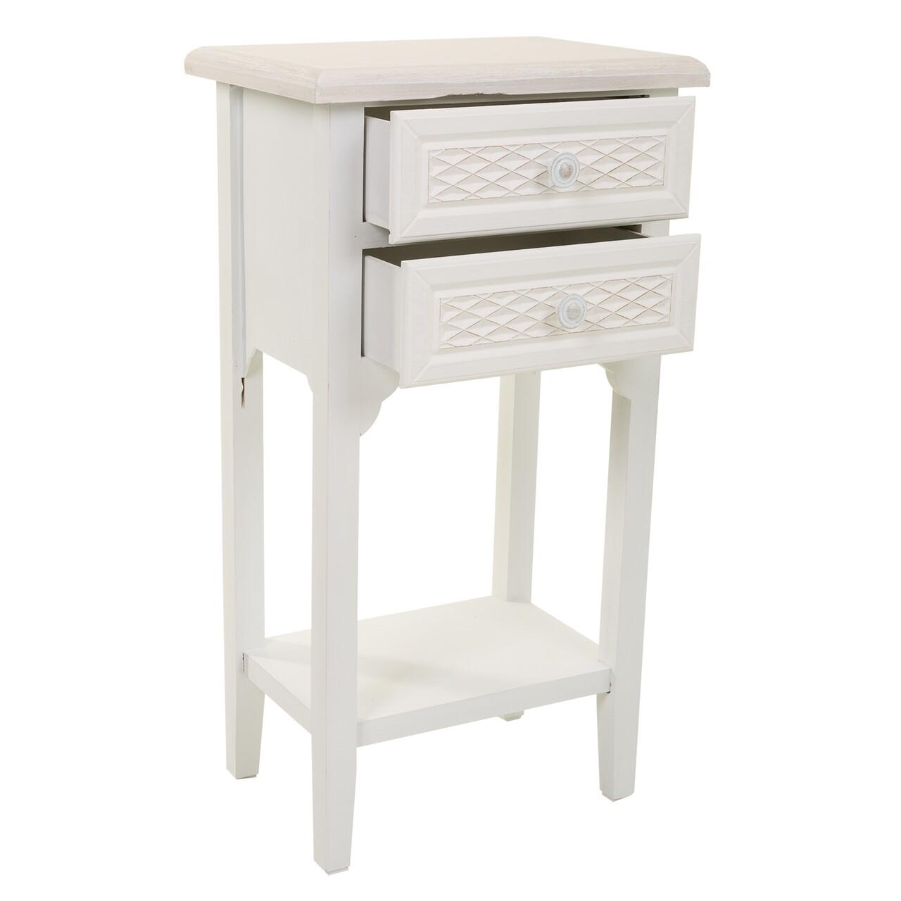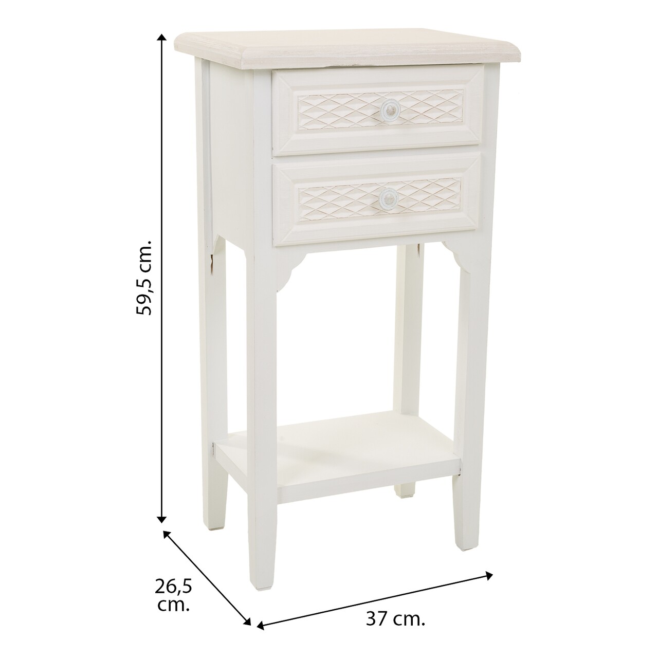 Noptiera cu 2 sertare Creaciones Meng. 37x26.5x69.5 cm, MDF, alb/crem