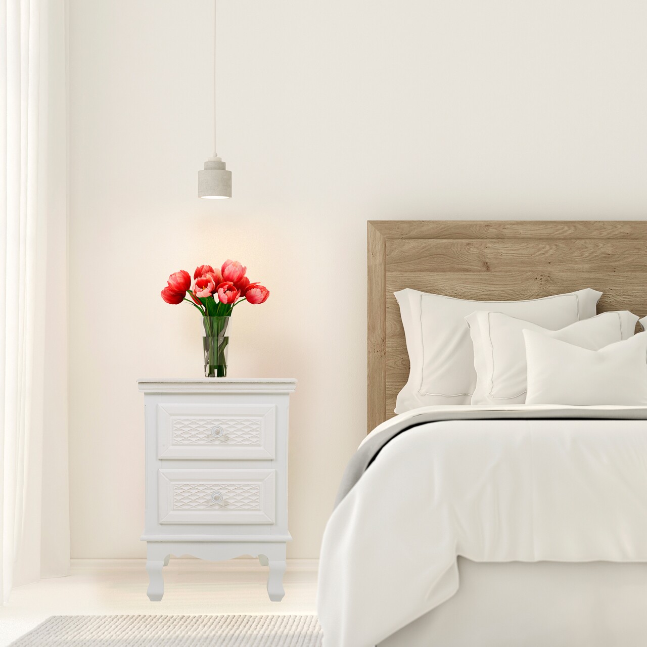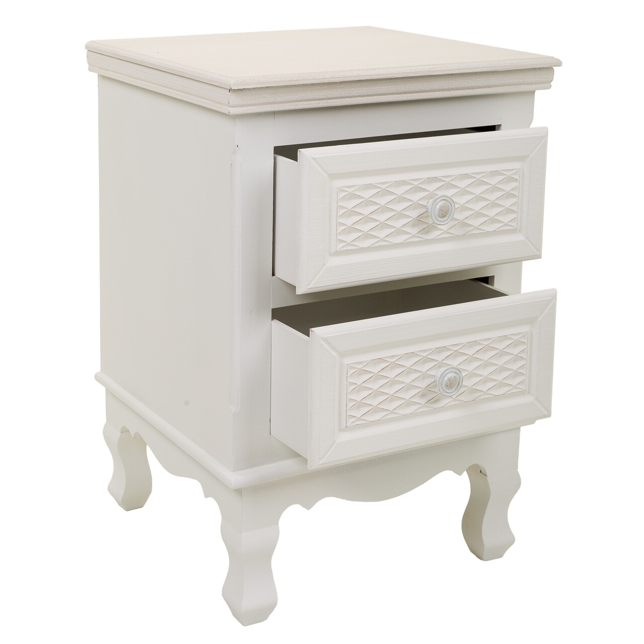 Noptiera cu 2 sertare Creaciones Meng, 37x33.5x53 cm, MDF, alb/crem