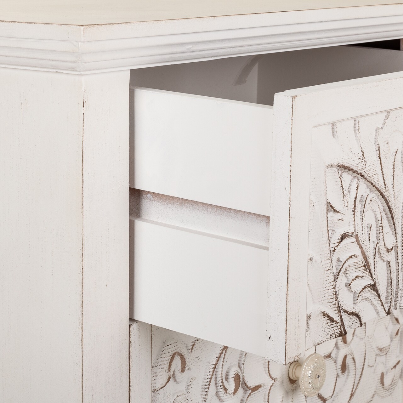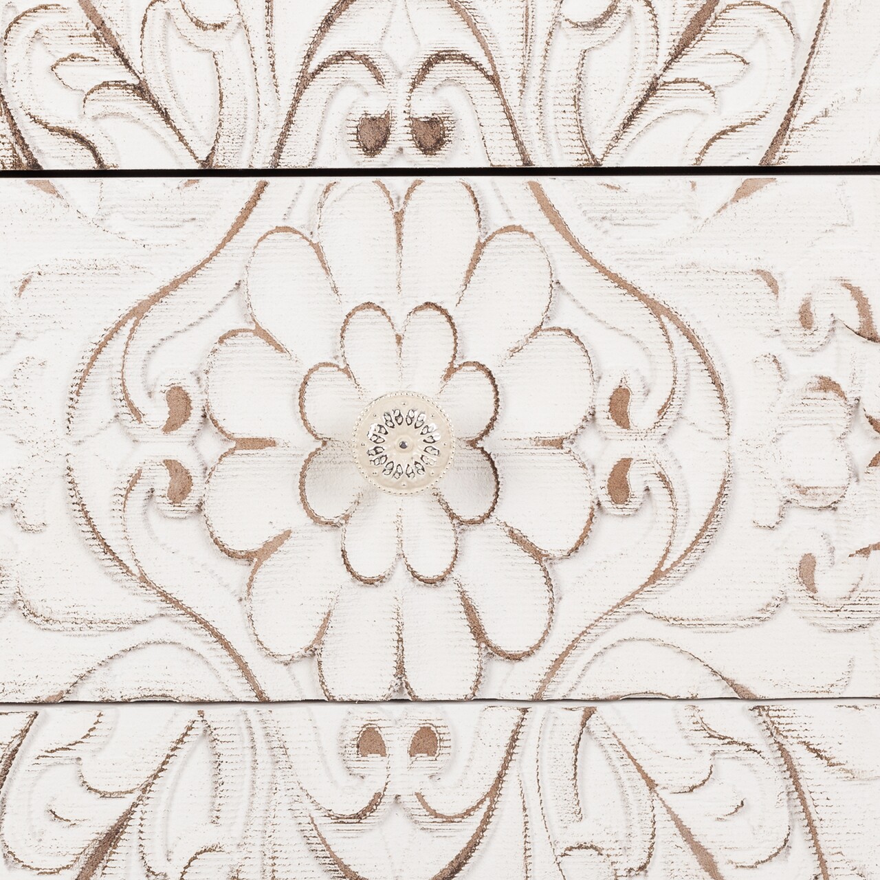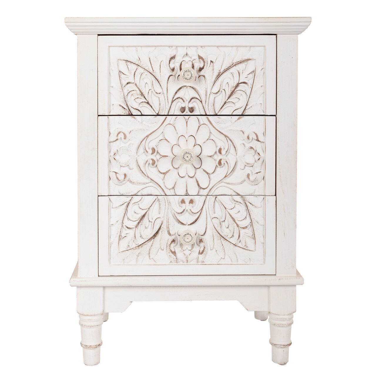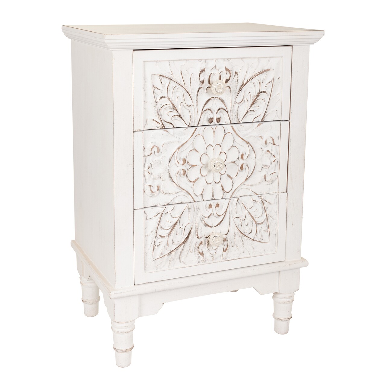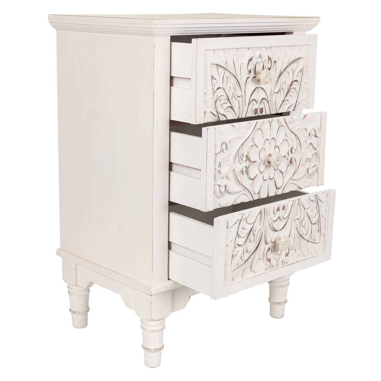 Noptiera cu 3 sertare Creaciones Meng, 46x32.5x67 cm, lemn de brad, alb antic