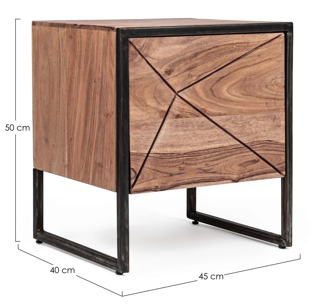 Noptiera Egon, Bizzotto, 45x40x50 cm, otel/lemn de salcam