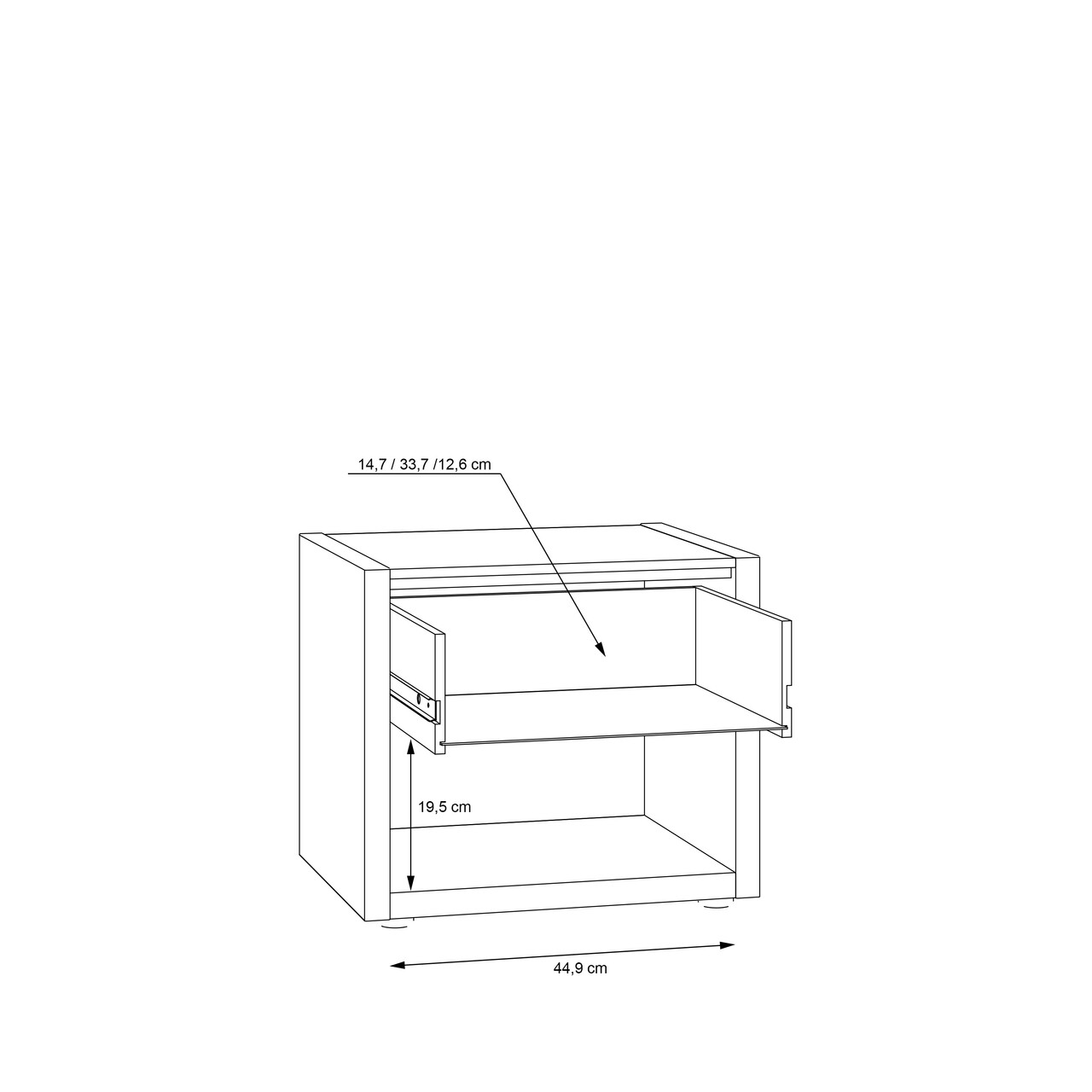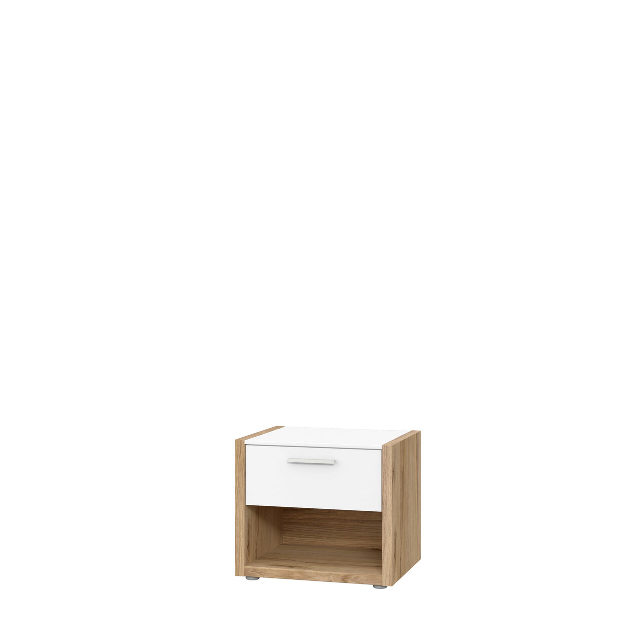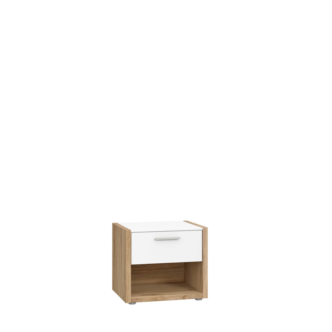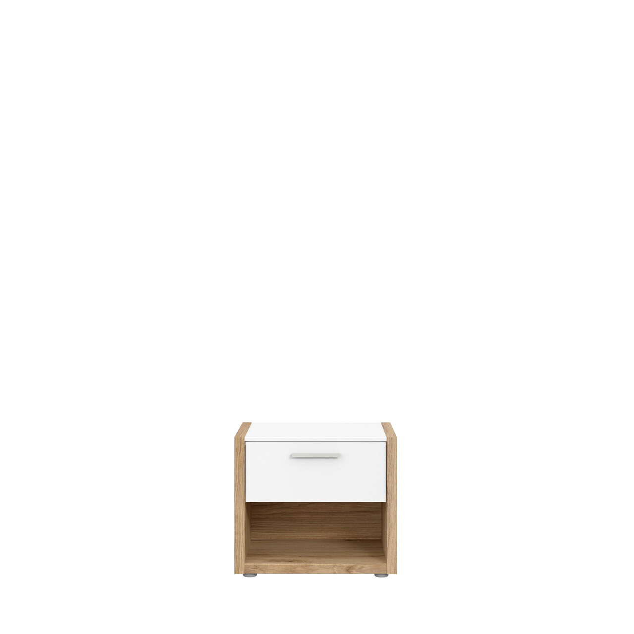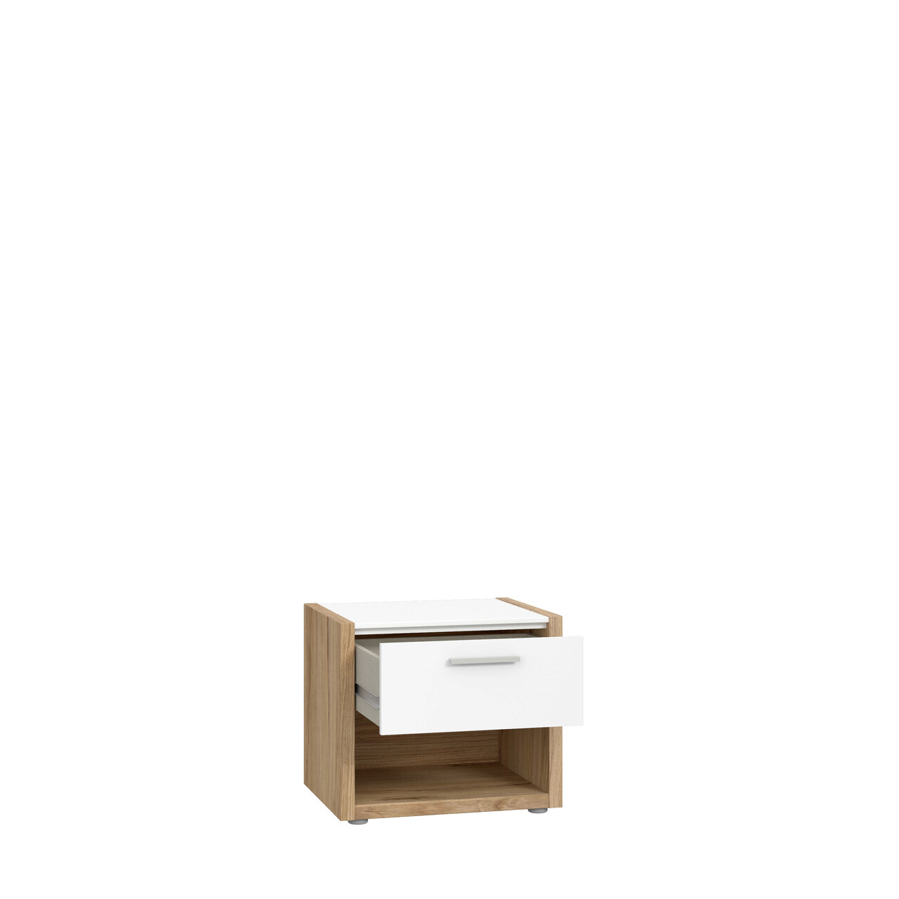 Noptiera Ermelo, Bedora, 51.4x41.5x44.8 cm, PAL/metal, stejar/alb