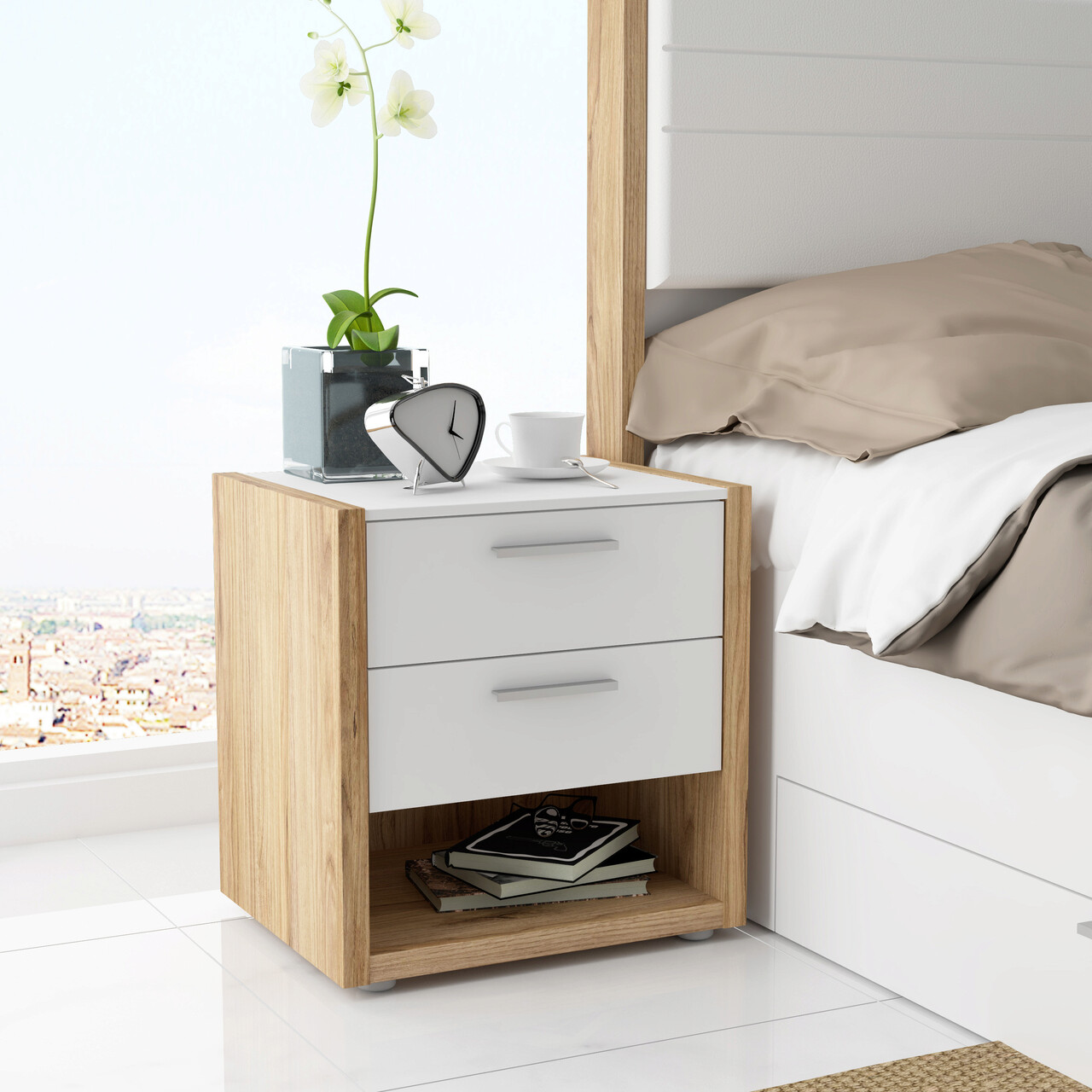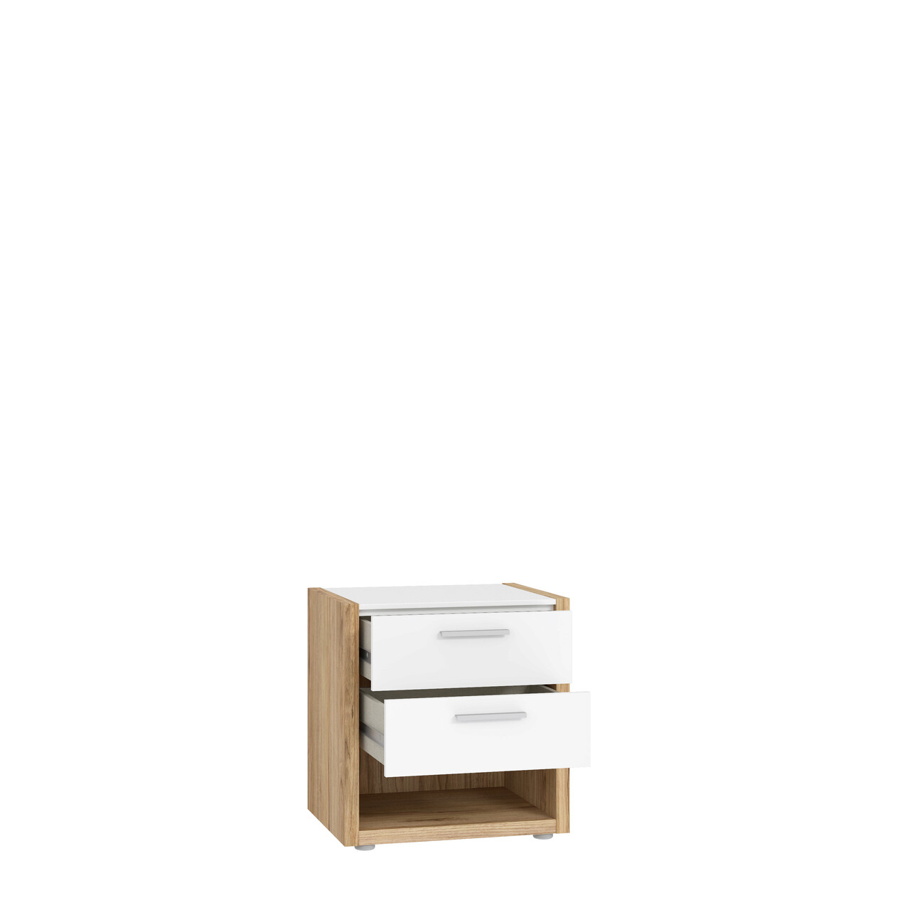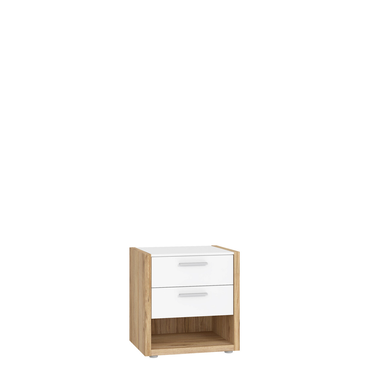 Noptiera Ermelo, Bedora, 51.4x41.5x53 cm, PAL/metal, stejar/alb