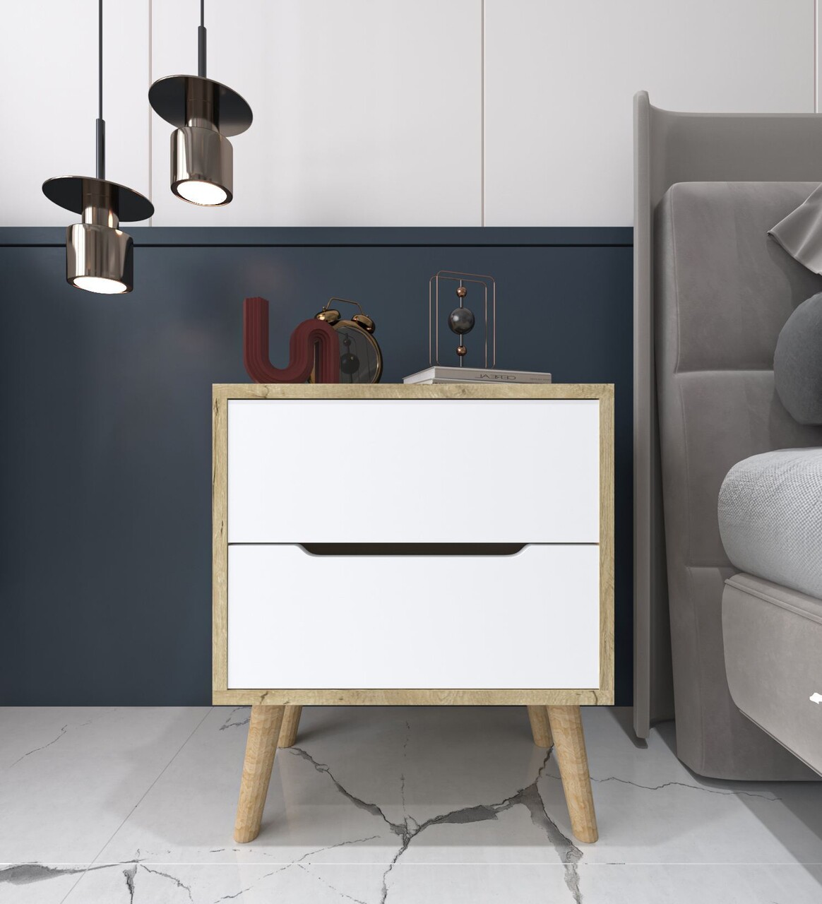 Noptiera, Hanah Home, Flora, 50x60x44 cm, PAL, Stejar Safir / Alb