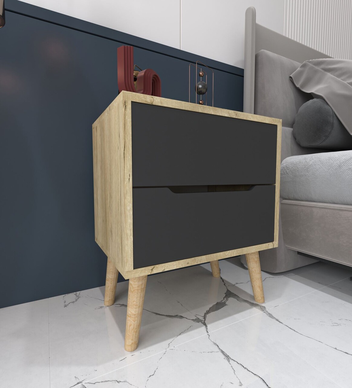 Noptiera, Hanah Home, Flora, 50x60x44 cm, PAL, Stejar safir / Antracit
