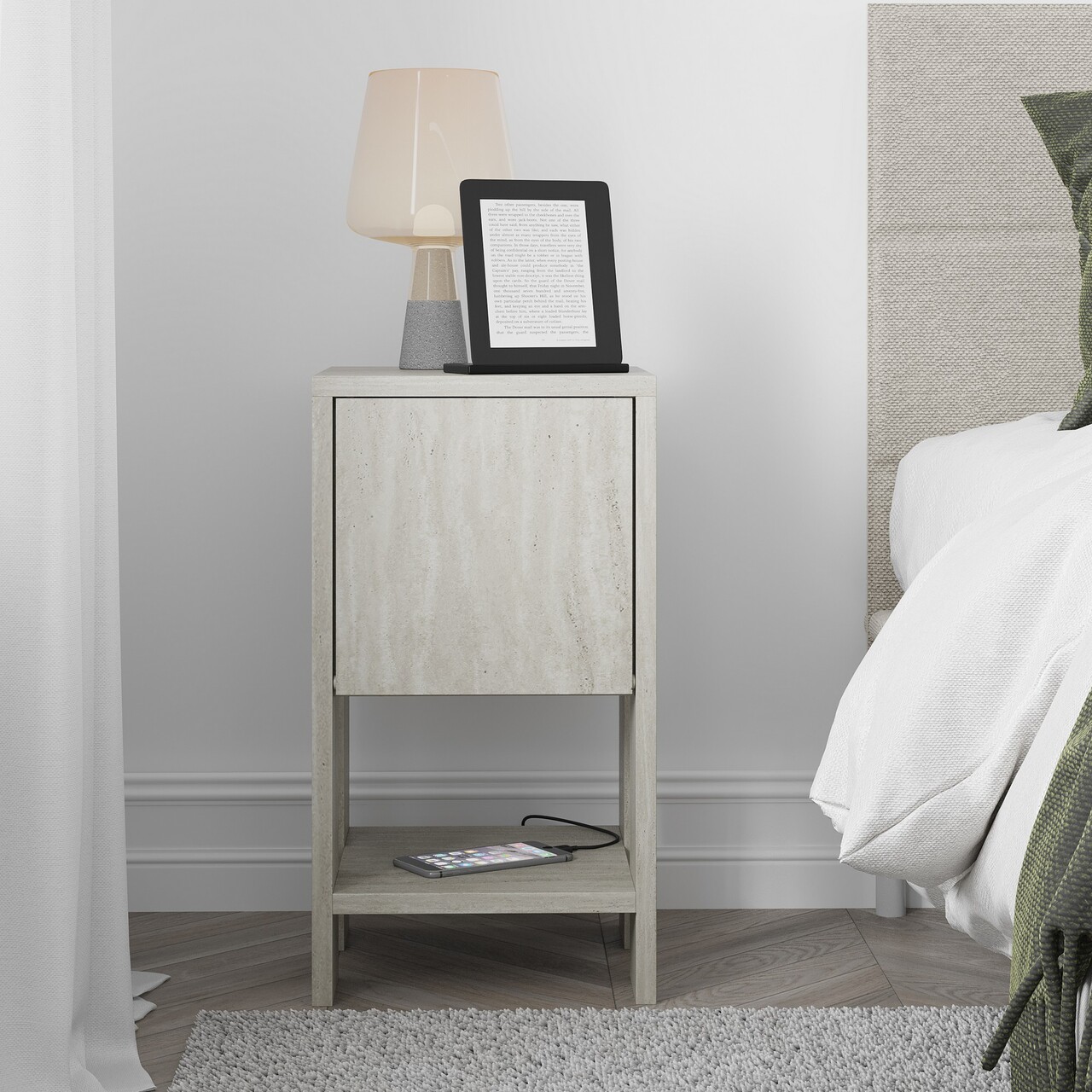Noptiera, Homitis, Ema, 30x55x30 cm, PAL, Travertin