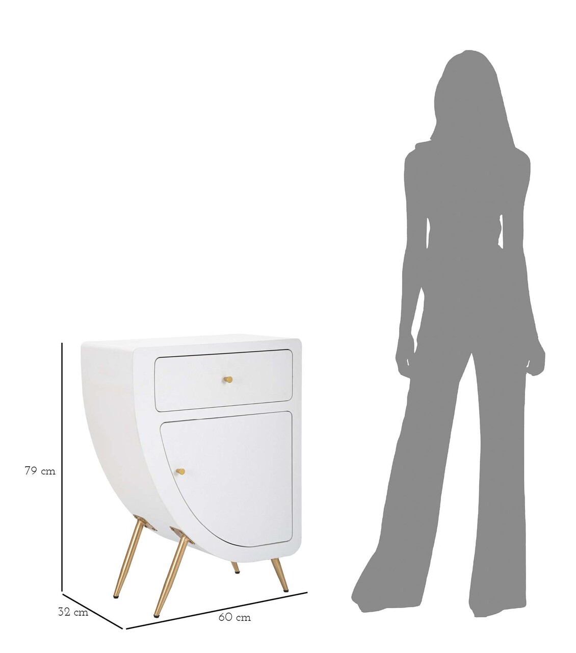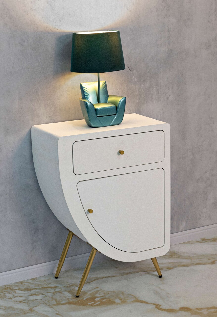 Noptiera inalta Venus, Mauro Ferretti, 60x32x79 cm, MDF/fier, alb/auriu