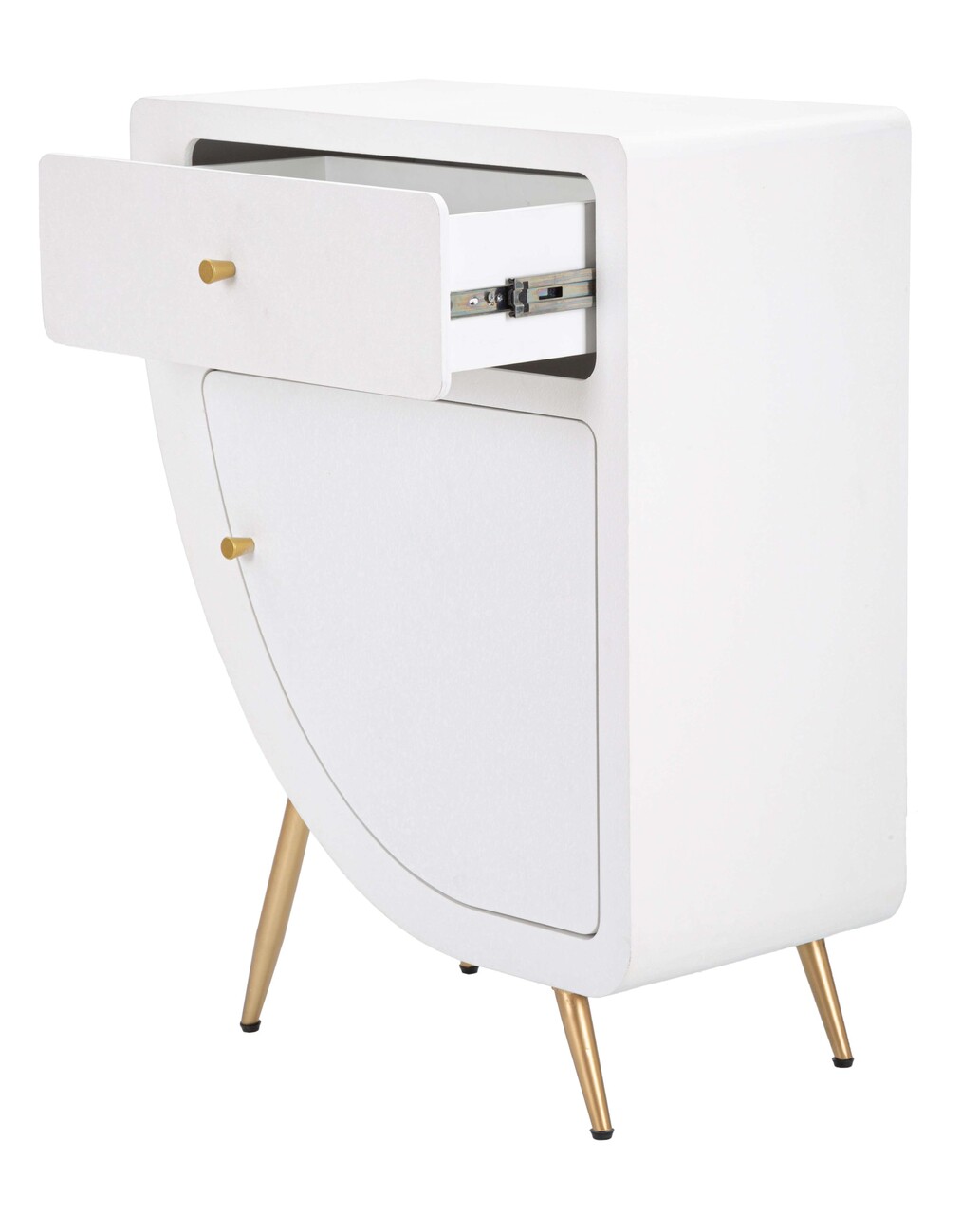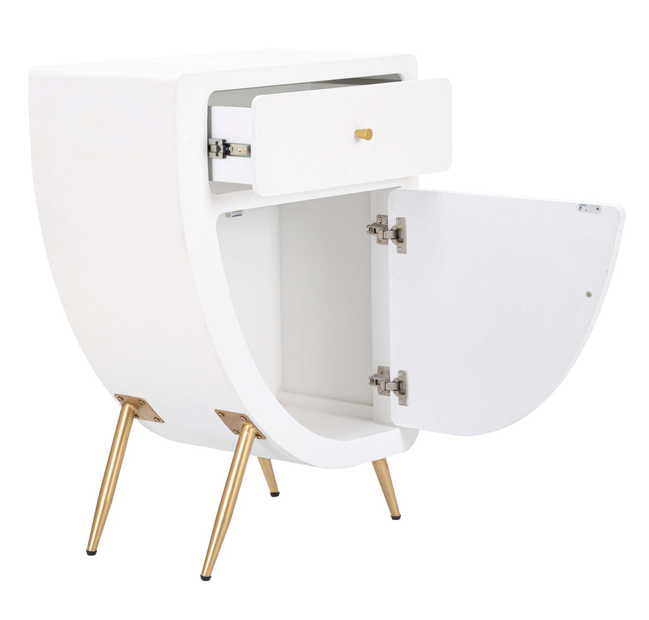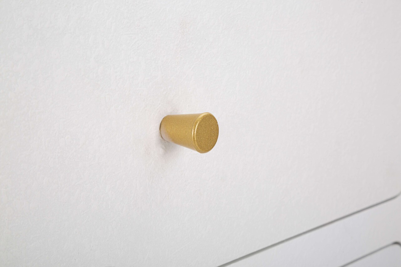 Include un sertar si o usa pentru depozitare eficienta. Picioare din metal auriu, se monteaza cu usurinta.