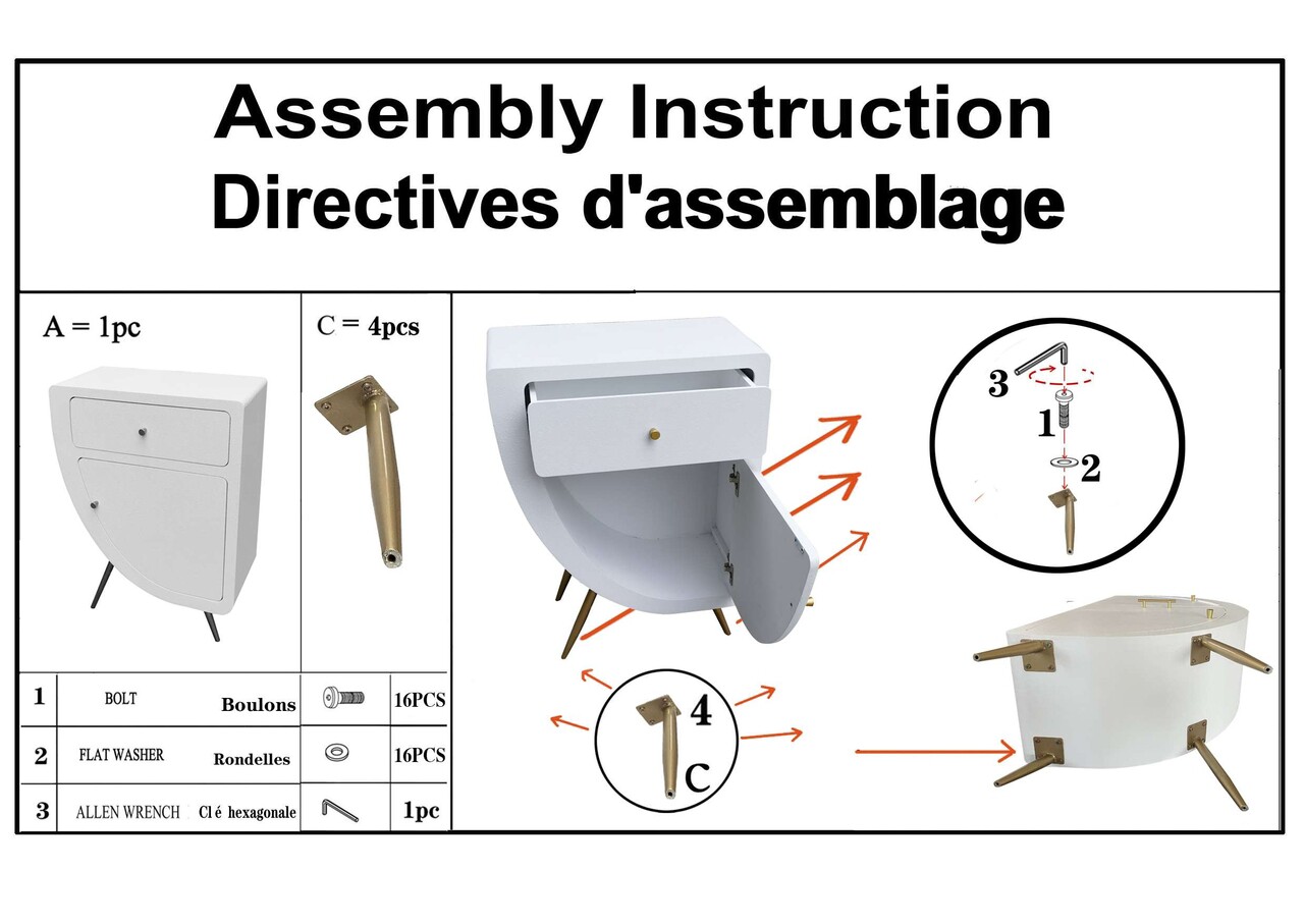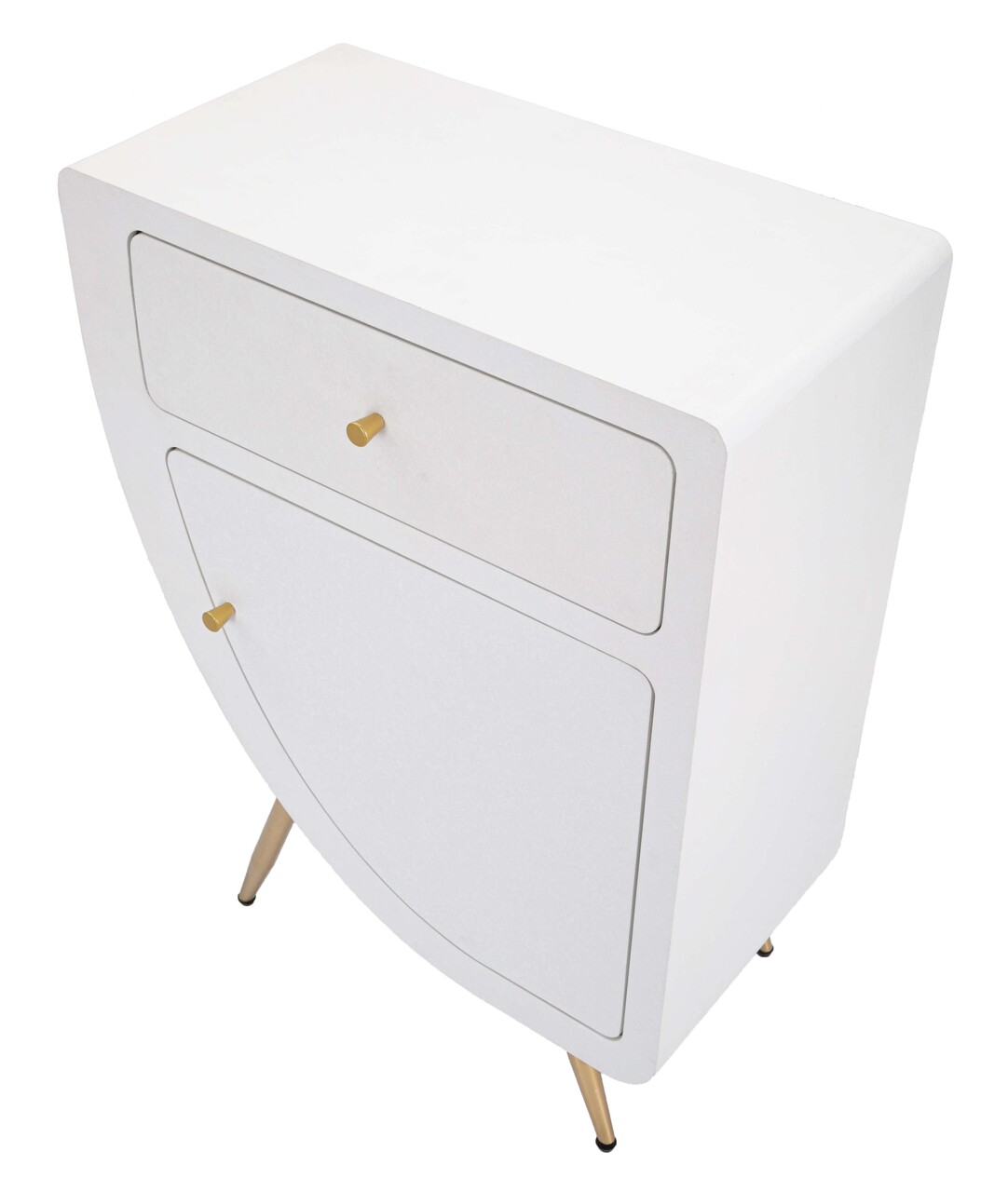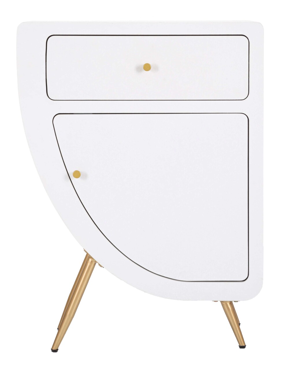 Include un sertar si o usa pentru depozitare eficienta. Picioare din metal auriu, se monteaza cu usurinta.