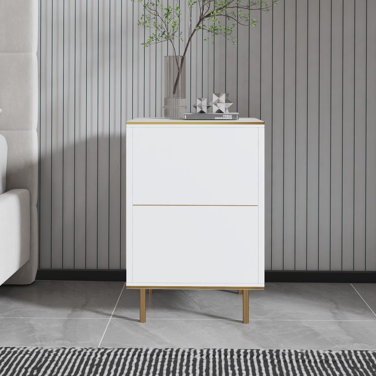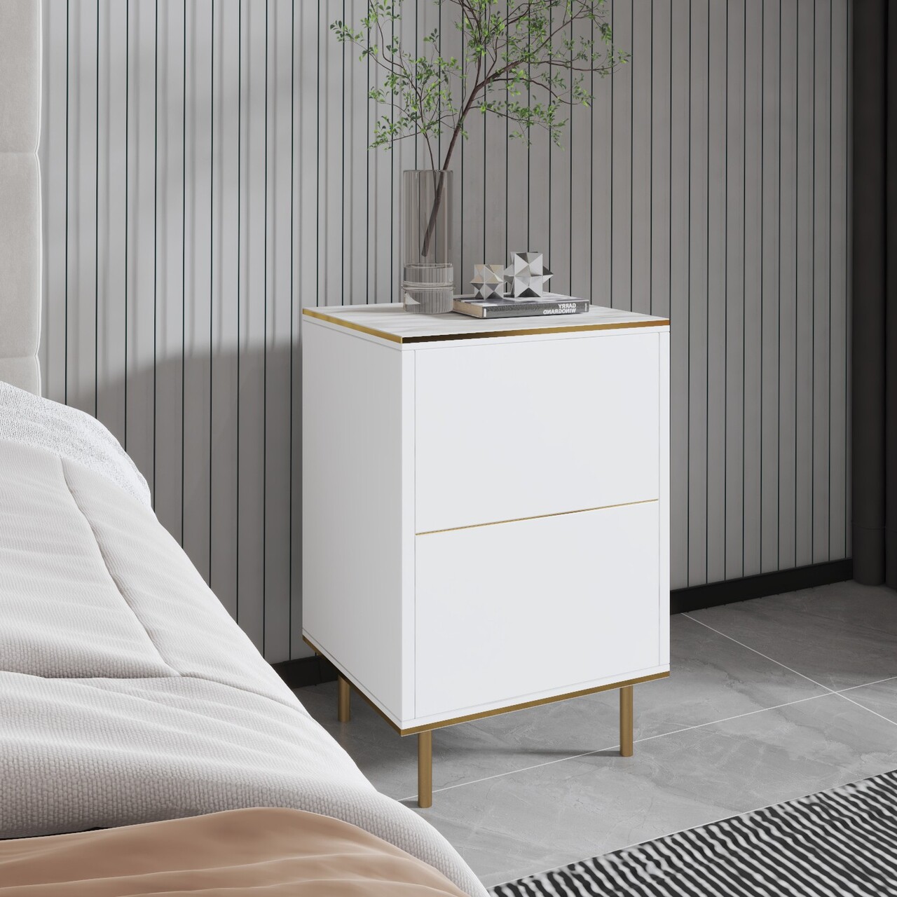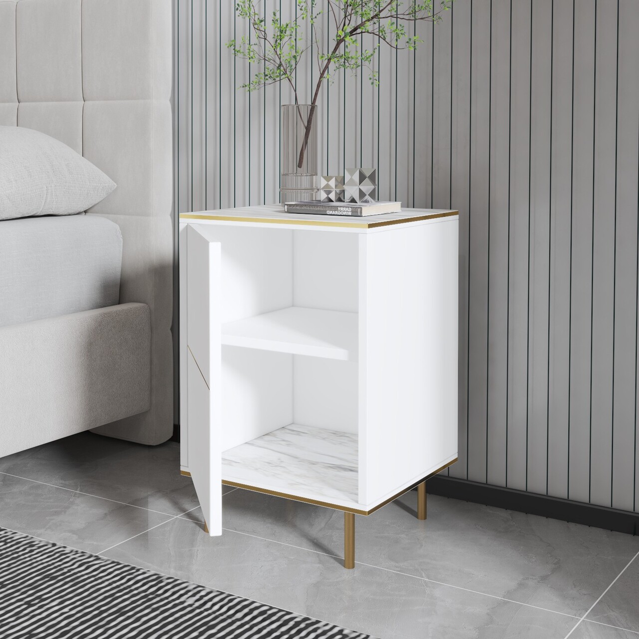Noptiera, Inarch, Imaj, 40x60x35 cm, PAL, Marmură albă/aur