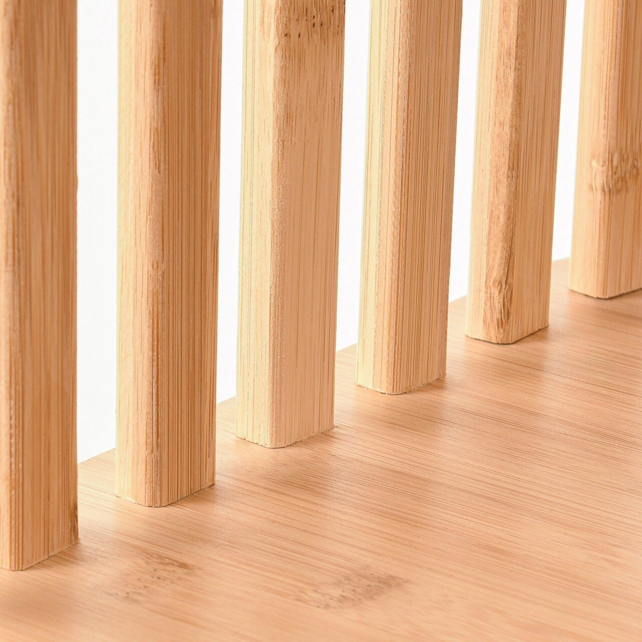 Fabricata din bambus durabil, noptiera este rezistenta la utilizarea zilnica. Suprafata sa este usor de curatat - pur si simplu stergeti-o cu o carpa umeda. Materialul natural adauga eleganta si armonie interiorului, fiind in acelasi timp ecologic.