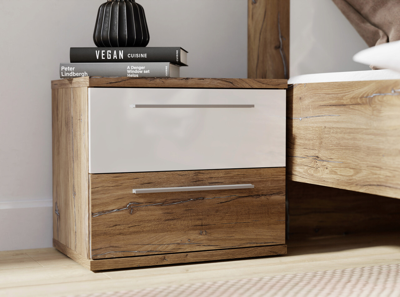 Noptiera Leudal, Bedora, 50.1x34.7x44.7 cm, PAL/plastic, stejar/alb lucios