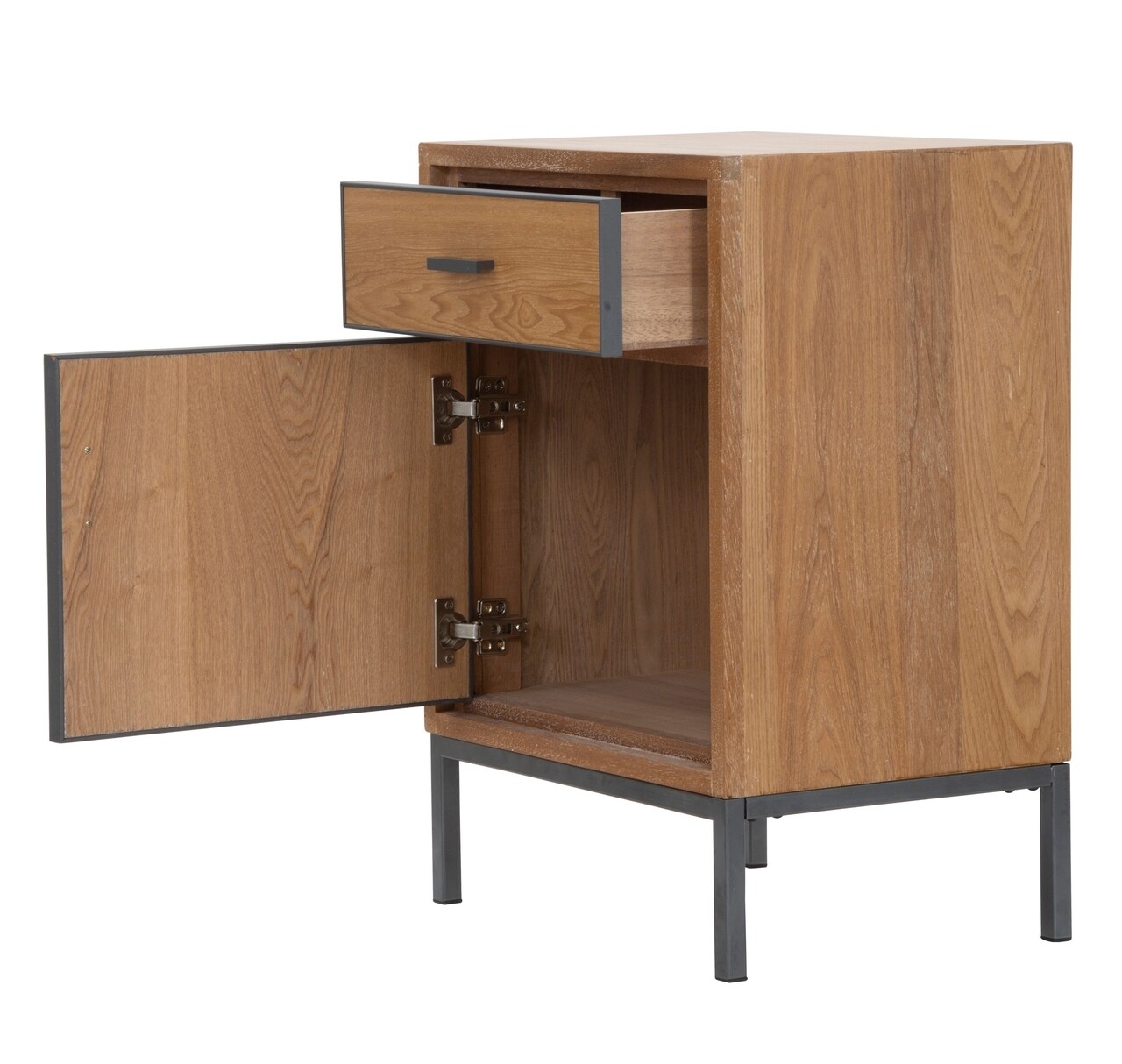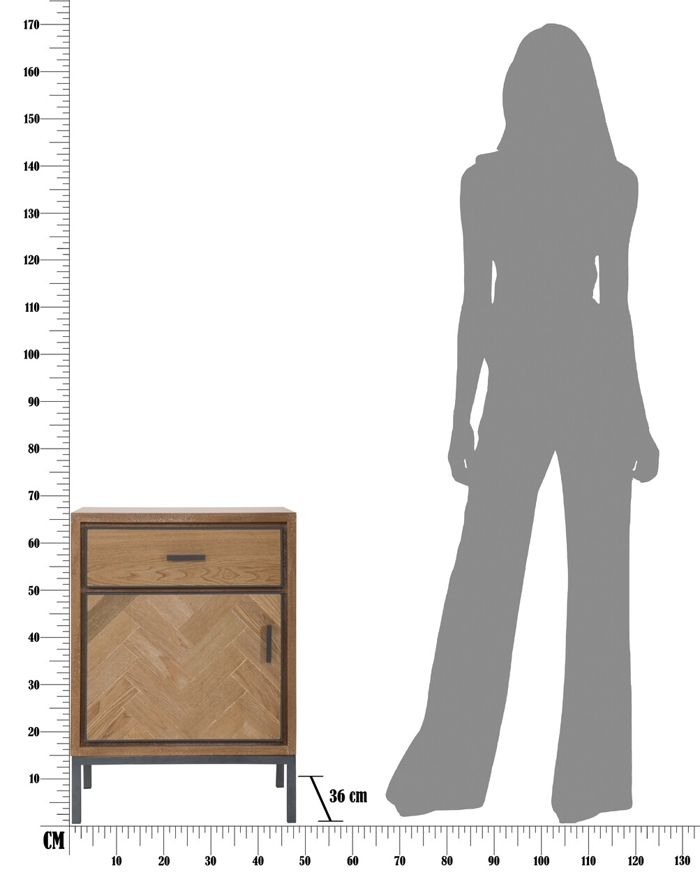 Noptiera Male, Mauro Ferretti, 48 x 36 x 68.5 cm, fier/lemn de brad, maro/gri