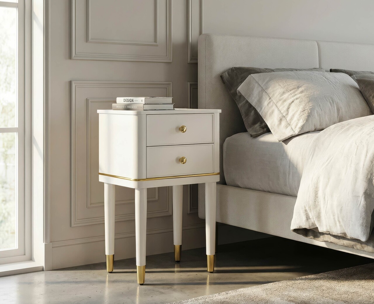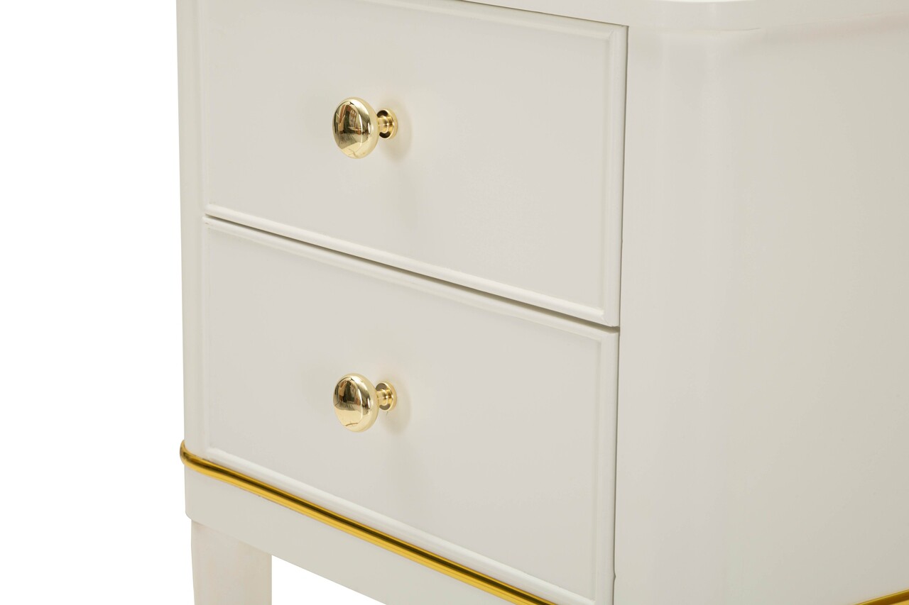 Noptiera, Mauro Ferretti, Camille, 40x30x71 cm, lemn de pin, alb/auriu