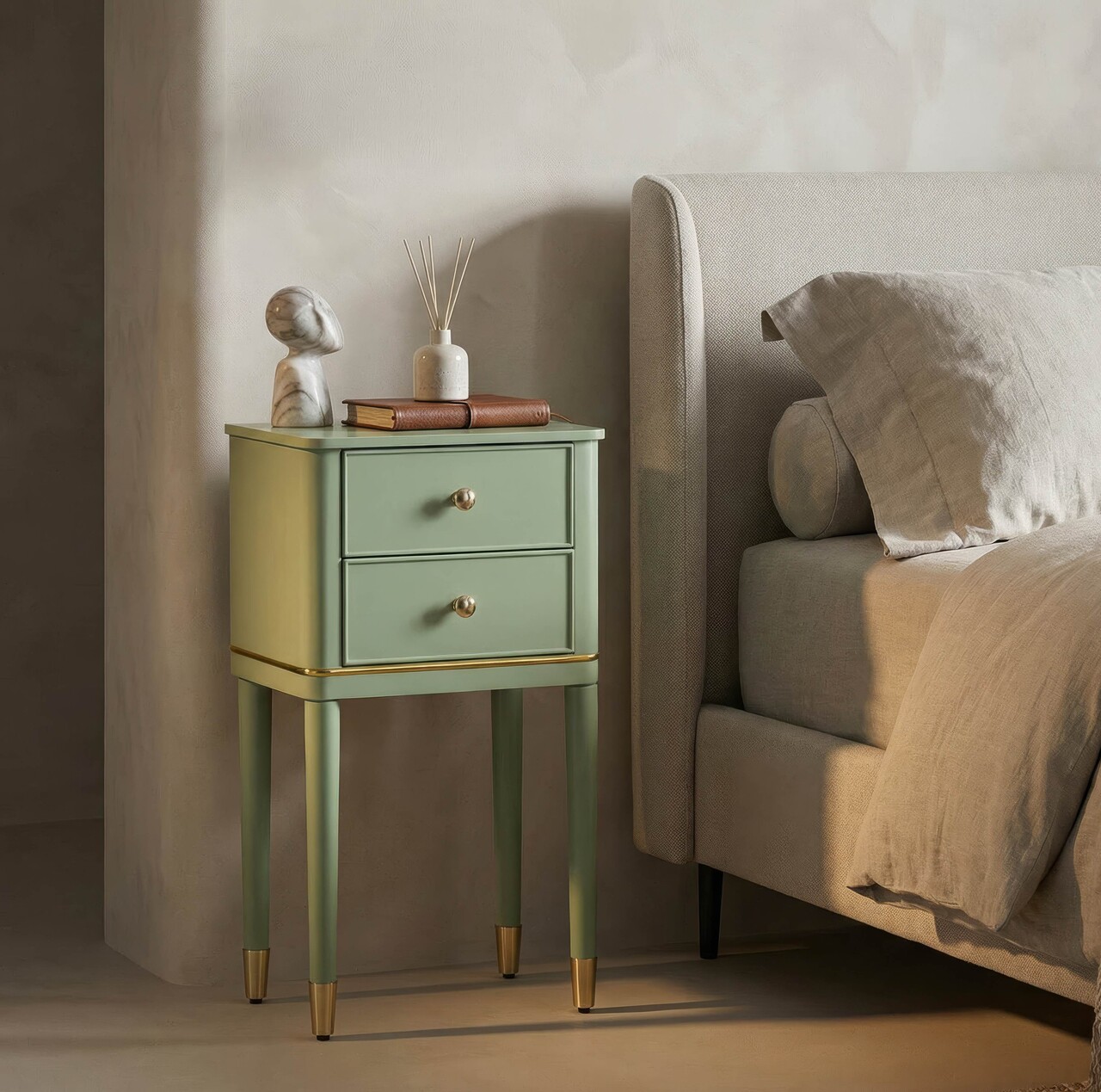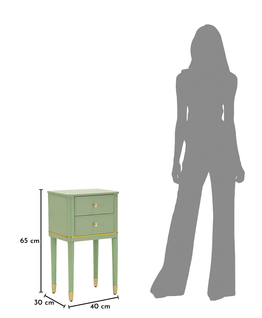 Noptiera, Mauro Ferretti, Camille, 40x30x71 cm, lemn de pin, verde/auriu