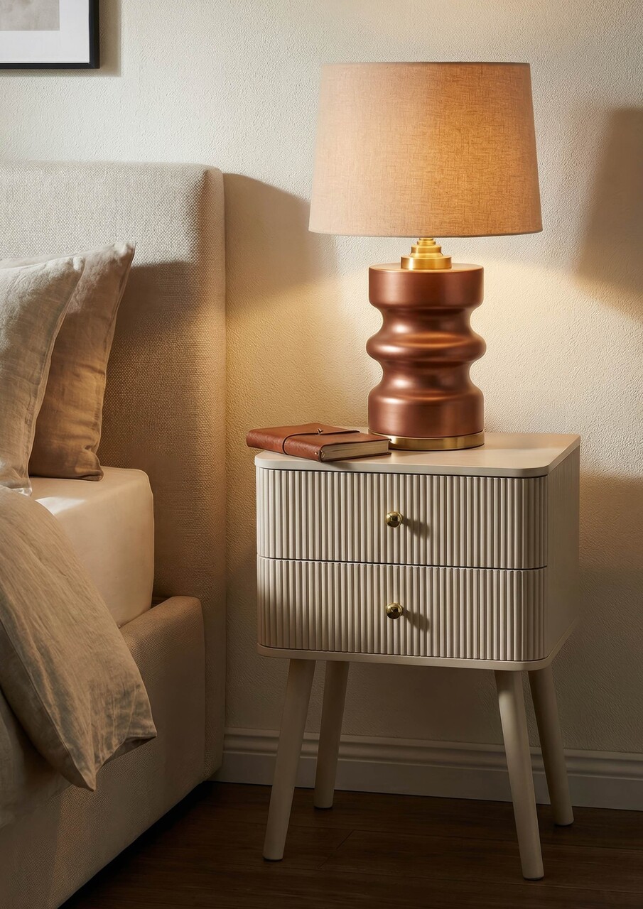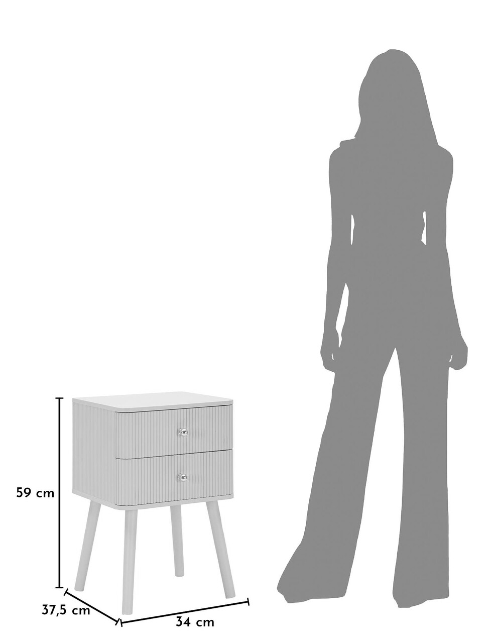 Noptiera, Mauro Ferretti, Shy, 34x37.5x59 cm, lemn de pin, alb/auriu
