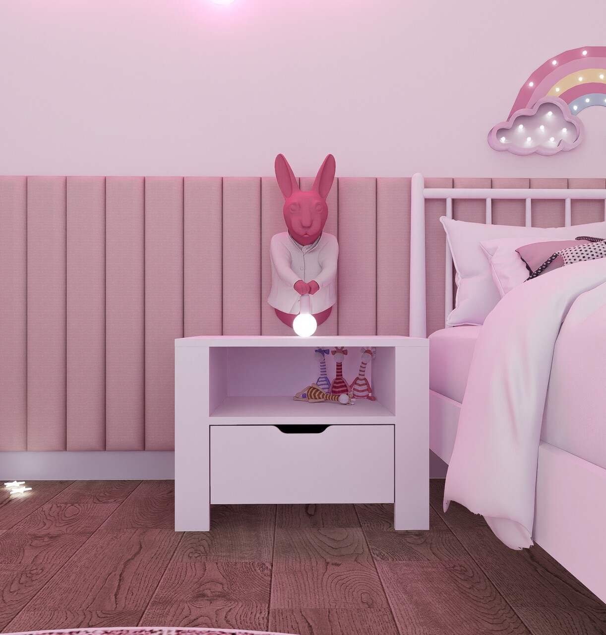 Noptiera, Miwood, Duru 1600-35, 60x45x42 cm, PAL, Alb mat