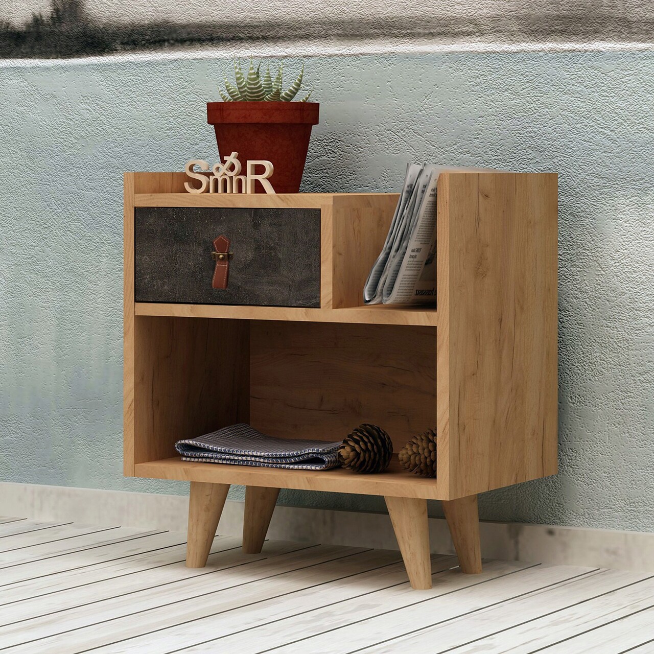 Noptiera, Mod Design, Polla, 50x52x40 cm, PAL, Stejar / Gri închis