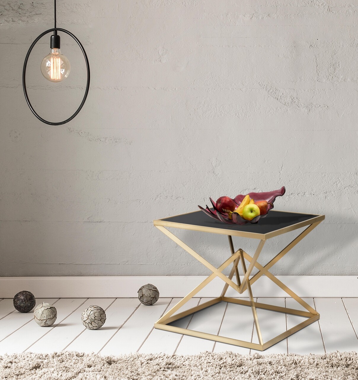 Noptiera Piramid, Mauro Ferretti, 50x50x45 cm, fier, negru/auriu
