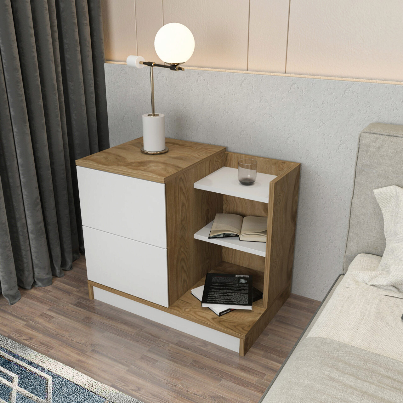 Noptiera, Retricy, Rena, 72x45x60 cm, PAL, Alb / Stejar
