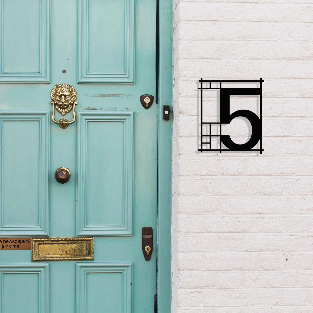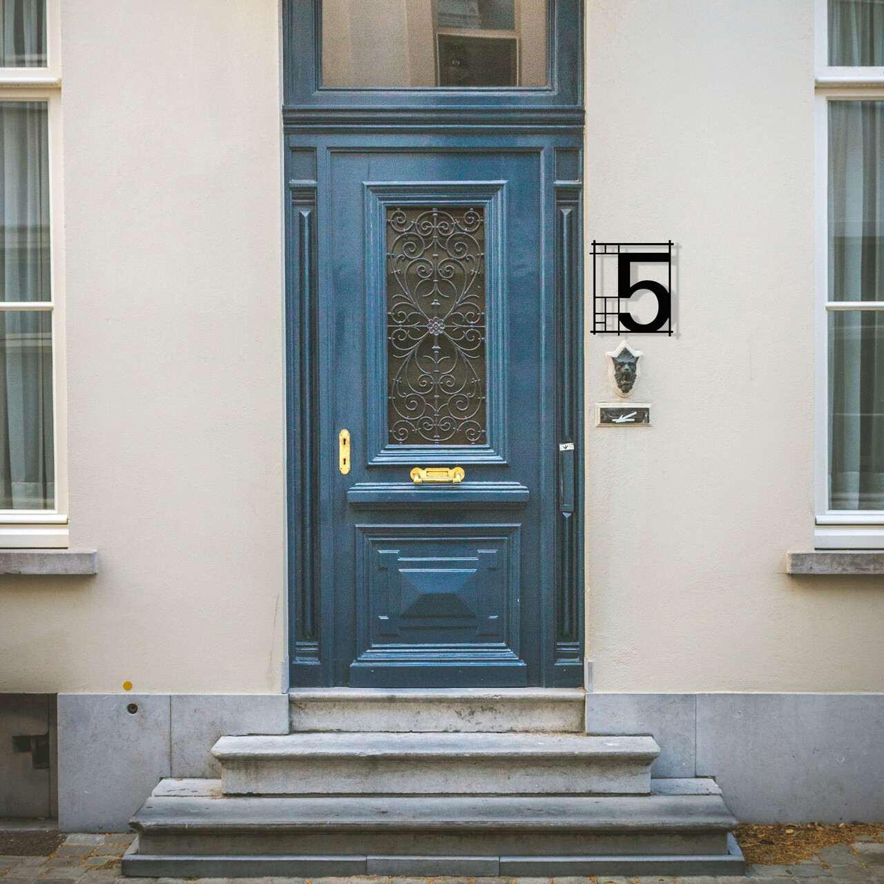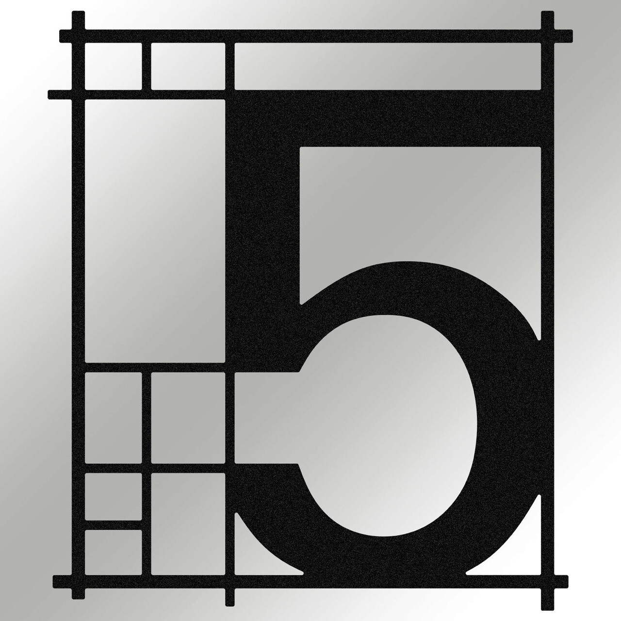 Numar casa pentru poarta/usa Five, metal, 14 x 16 cm, negru, cifra 5