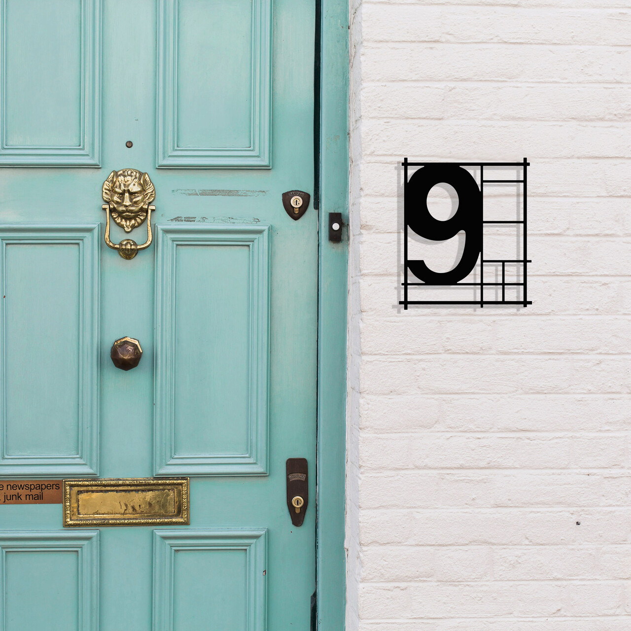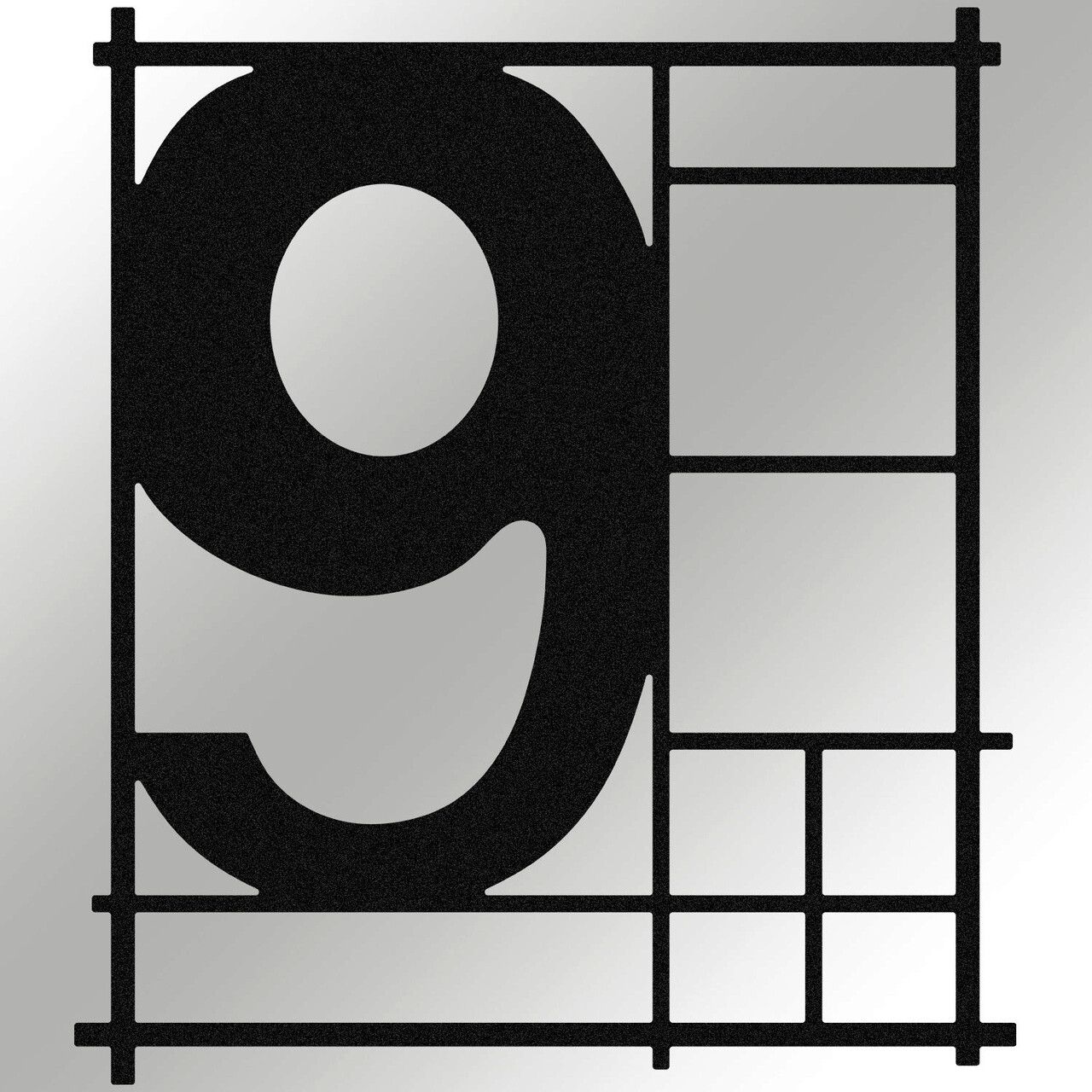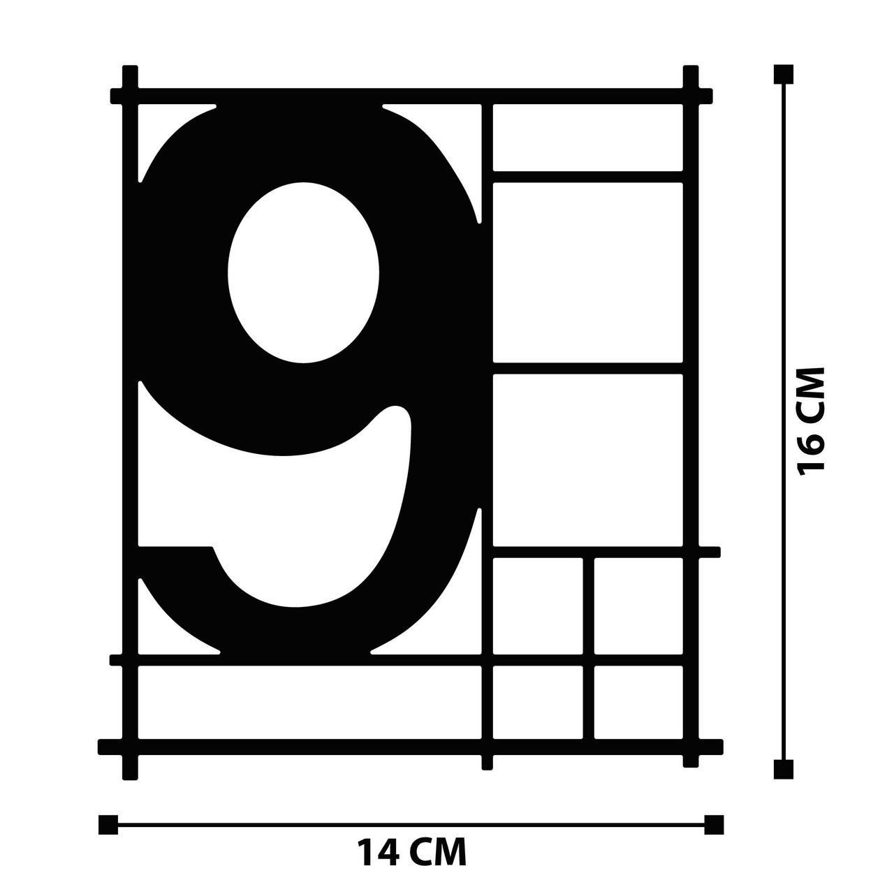 Numar casa pentru poarta/usa Nine, metal, 14 x 16 cm, negru, cifra 9