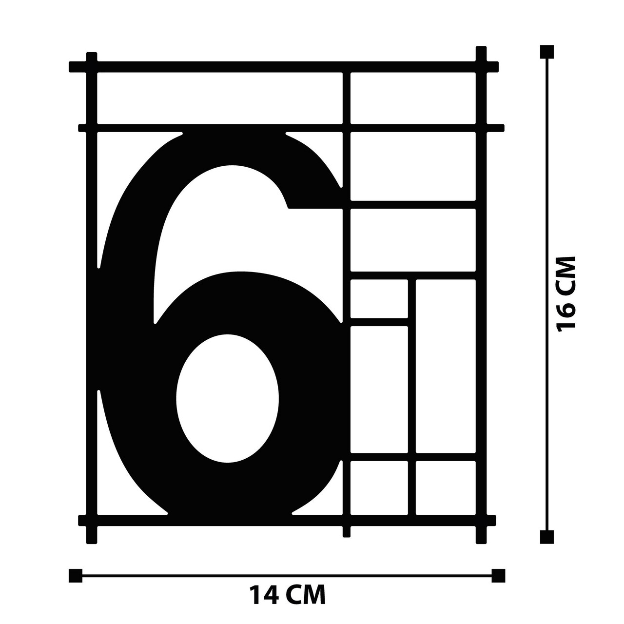 Numar casa pentru poarta/usa Six, metal, 14 x 16 cm, negru, cifra 6