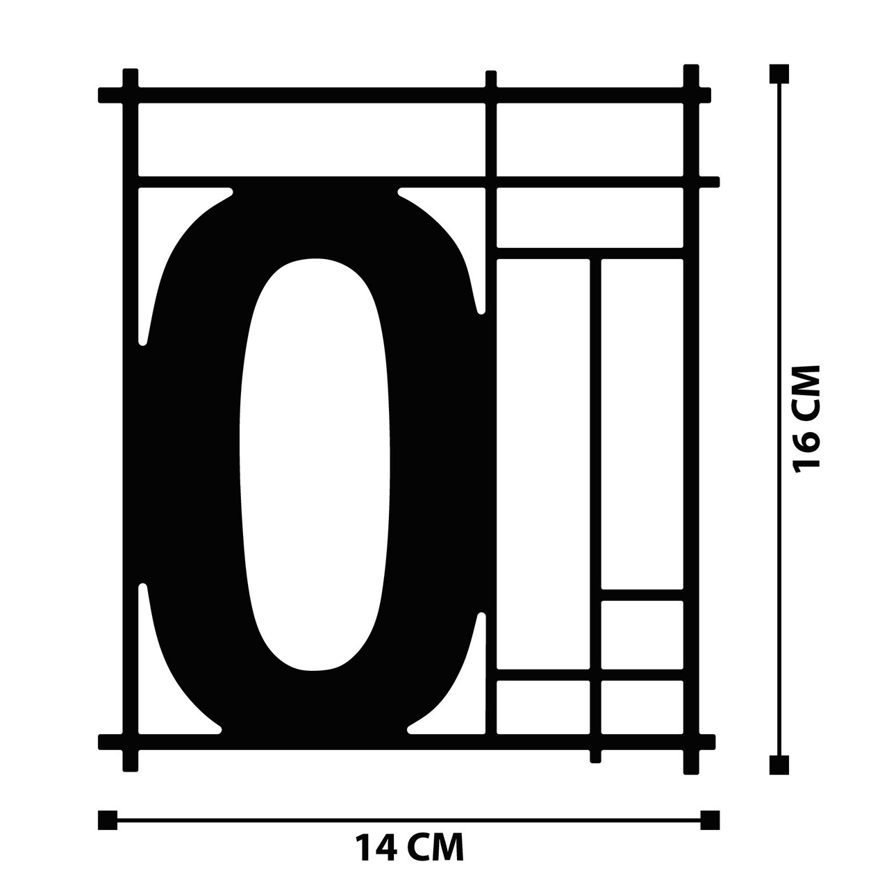 Numar casa pentru poarta/usa Zero, metal, 14 x 16 cm, negru, cifra 0