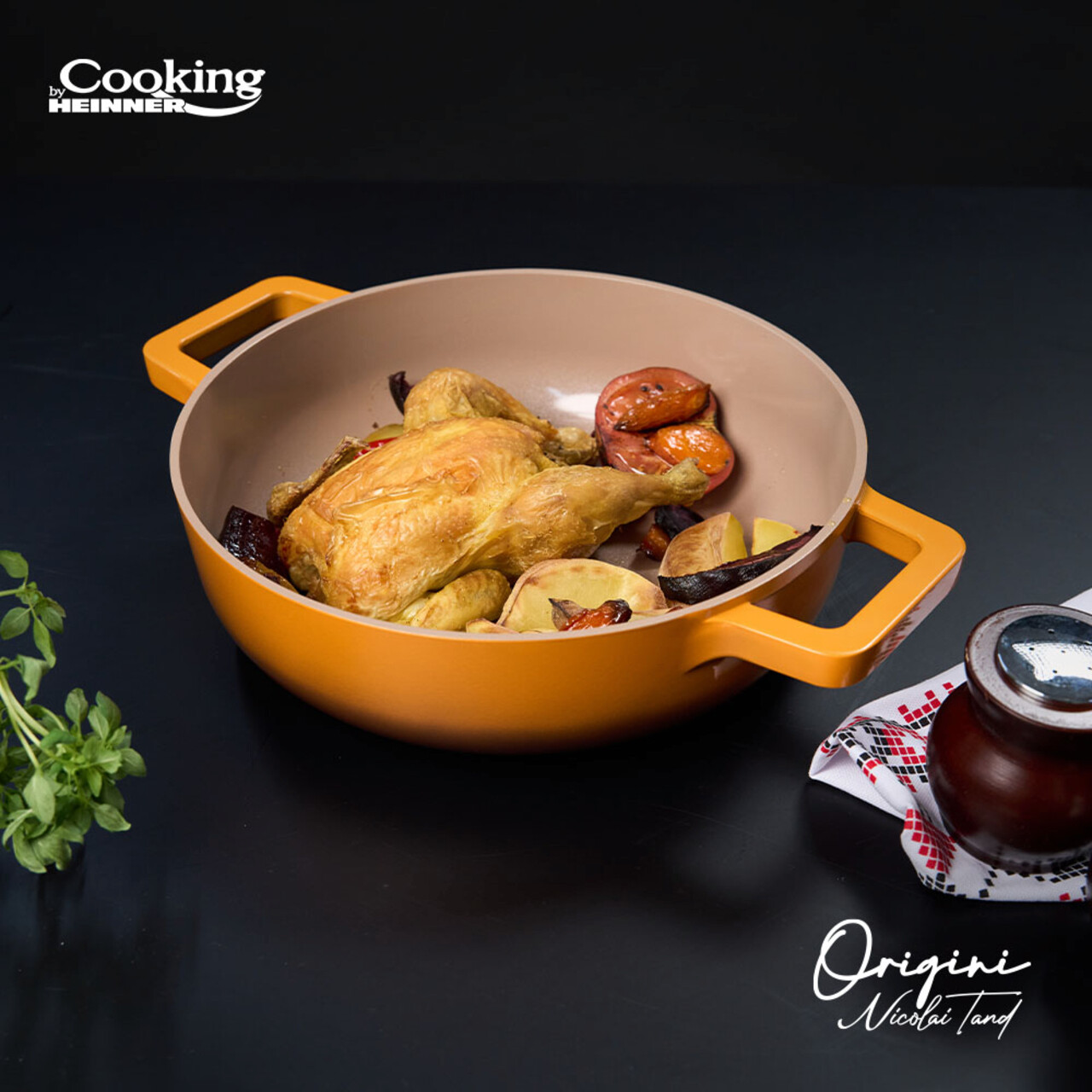 Oala cu capac 3.4 L, ORIGINI by Chef Nicolai Tand, Cooking by Heinner, 26x8 cm, aluminiu/ceramica, portocaliu degrade/gri