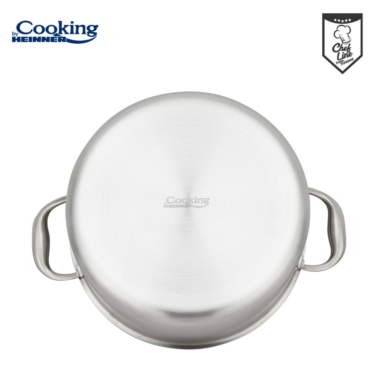 Vasele din inox Heinner au baza capsulata, astfel incat caldura sa fie distribuita uniform pe toata suprafata bazei, reducand considerabil consumul de energie si timpul de preparare. Capacul este prevazut cu o portiune perforata pentru a elimina aburii in timpul fierberii. Adaugand caracteristici precum acoperirea ceramica antiaderenta HONEYCOMB, cu protectie la zgarieturi, peretele in trei straturi (inox-aluminiu-inox) si baza cu inductie, face ca acest produs sa fie ideal pentru bucataria dumneavoastra.