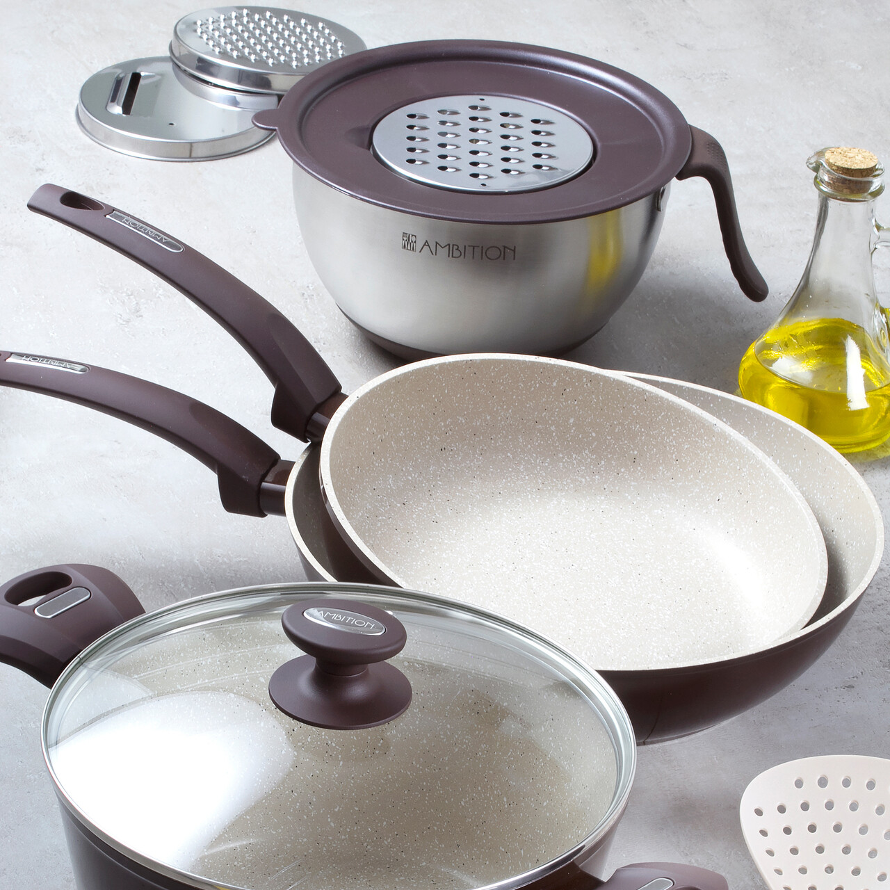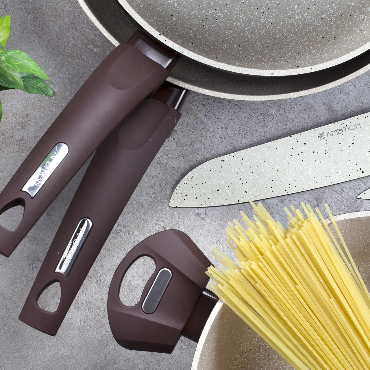 Oala cu capac Ambition, 28 cm, 6.5 L, invelis Qualum Basic Stone