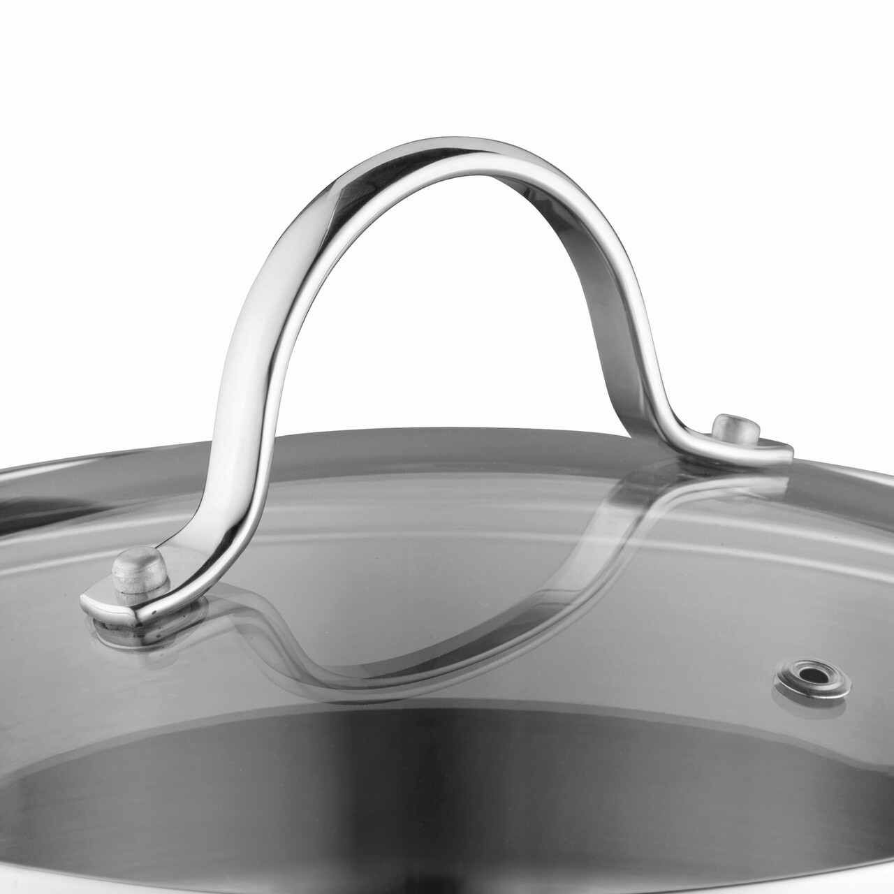 Oala este fabricata din otel inoxidabil 18/10 de inalta calitate, cu un finisaj elegant de oglinda si este prevazuta cu o baza cu mai multe straturi care asigura o distributie rapida si uniforma a caldurii pe orice tip de aragaz, inclusiv pe plita cu inductie. Pentru a incepe sa gatesti, foloseste marcajele practice ale capacitatii pentru a masura cantitatile potrivite si pune capacul din sticla transparenta cu aerisire integrata pentru abur pentru a accelera procesul de incalzire si a supraveghea mancarea in timp ce se gateste. Dimensiuni interioare: 24 x 24 x 15 cm. Dimensiuni exterioare: 32.5 x 25.5 x 23.5 cm.