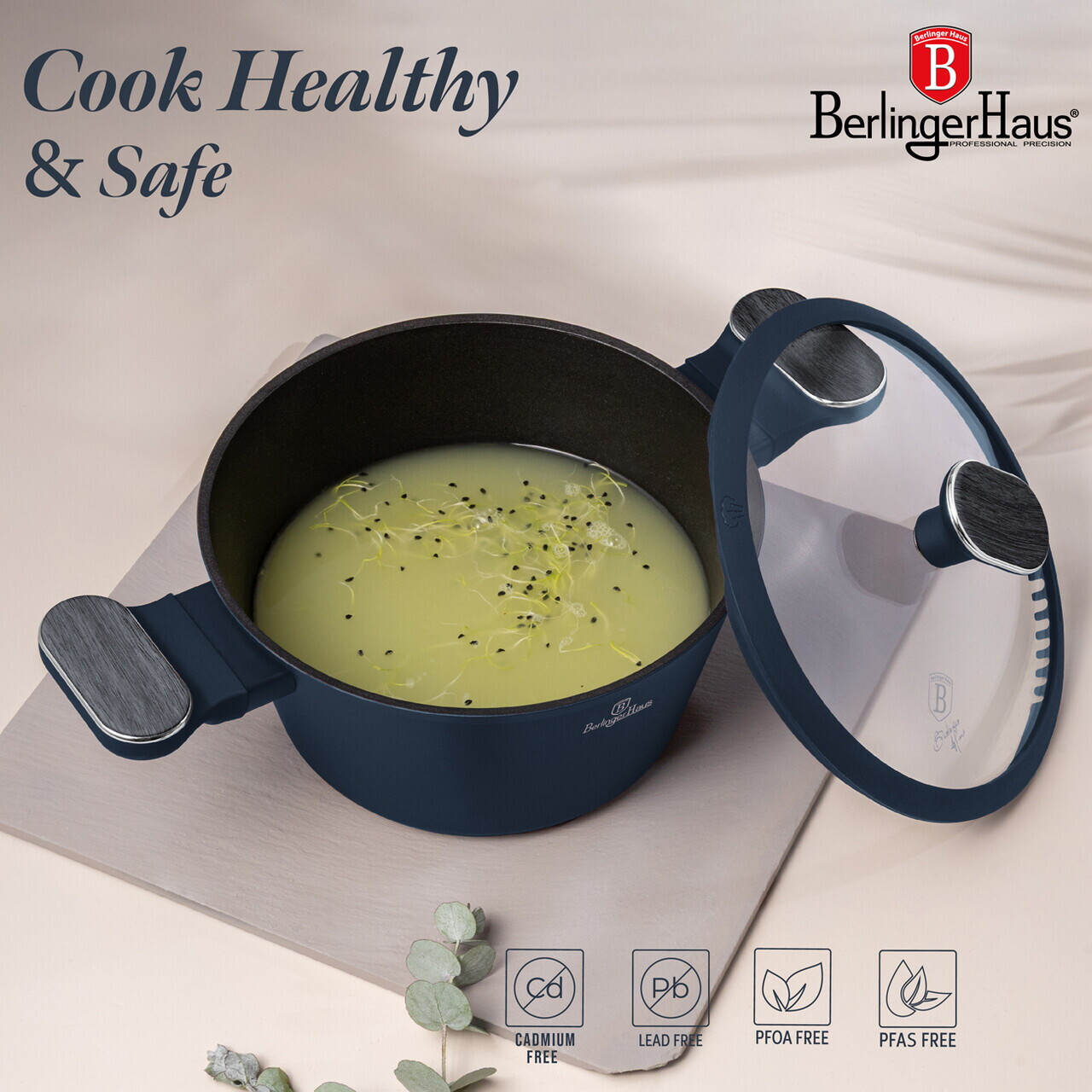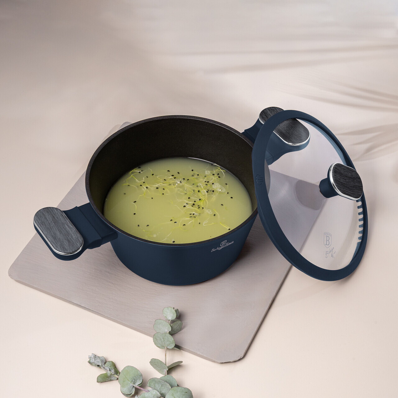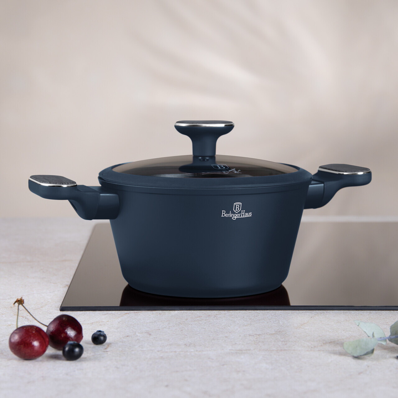 Oala cu capac Berlinger Haus, Deep Sea, 20 cm, 2.6 L, aluminiu forjat, albastru mat/gri