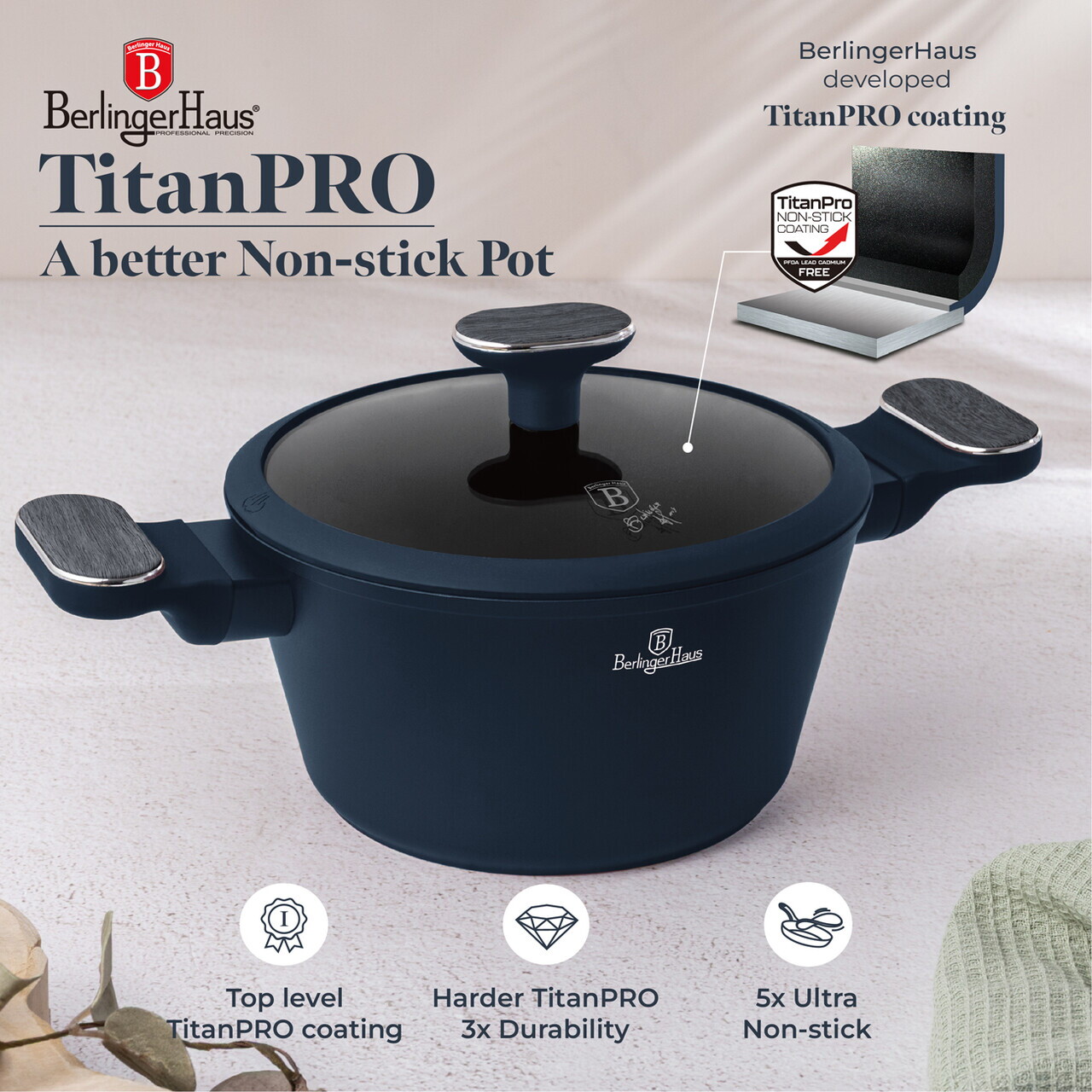 Material: aluminiu forjat cu strat antiaderent TitanPro