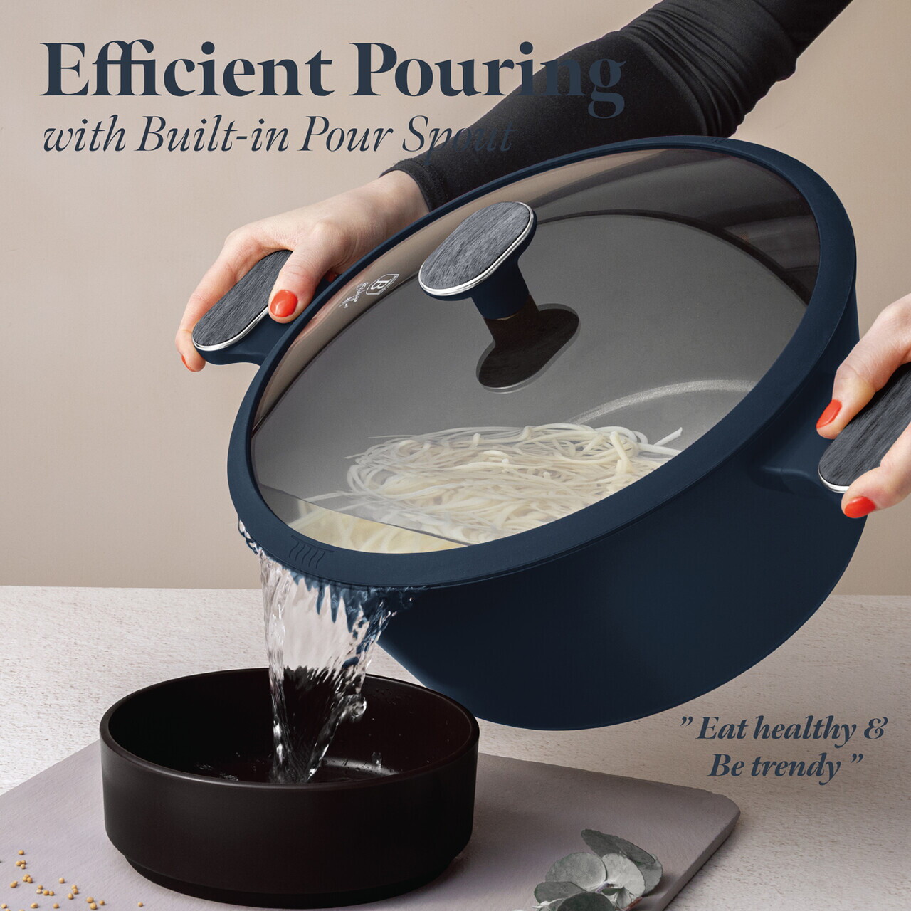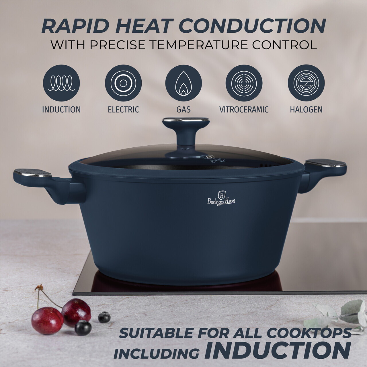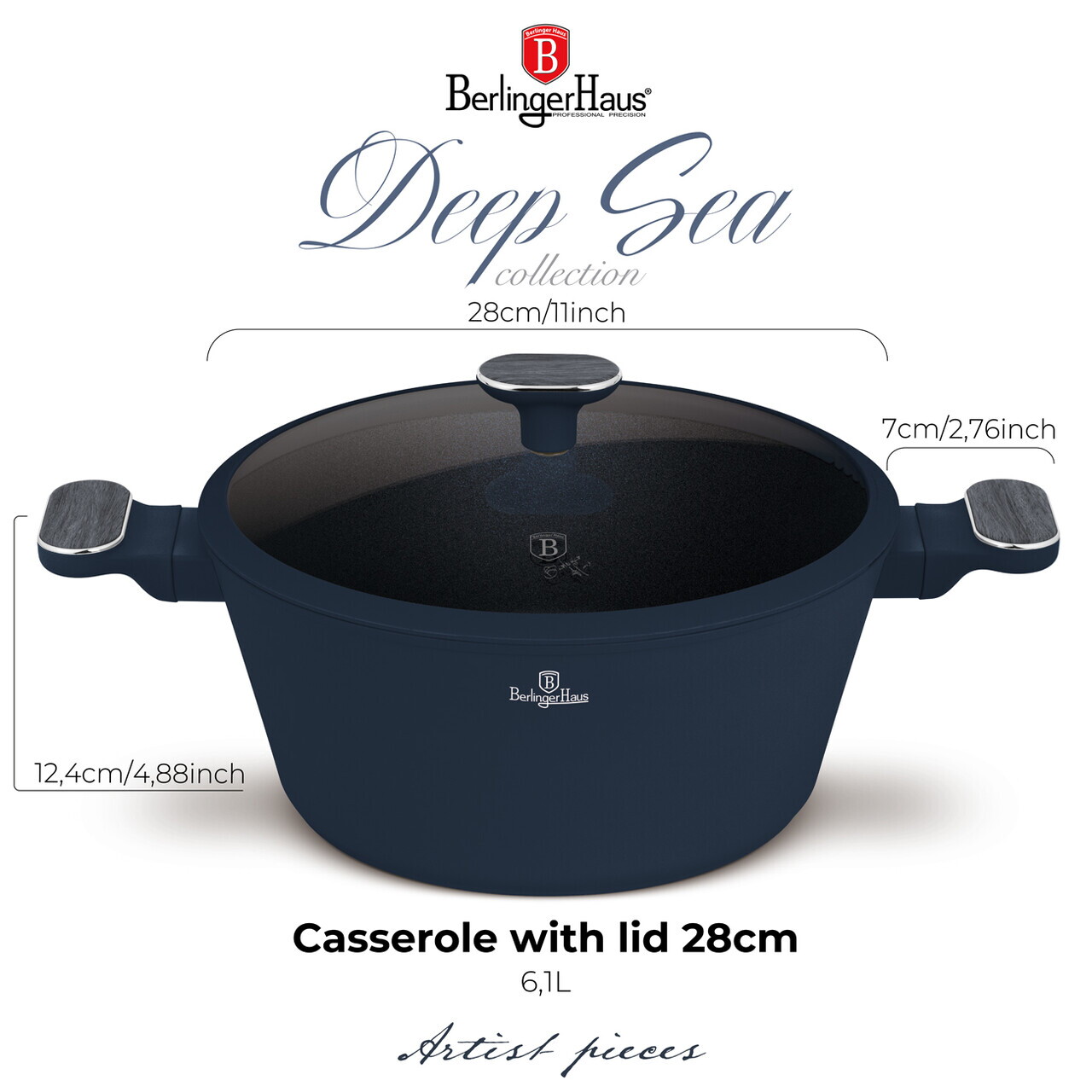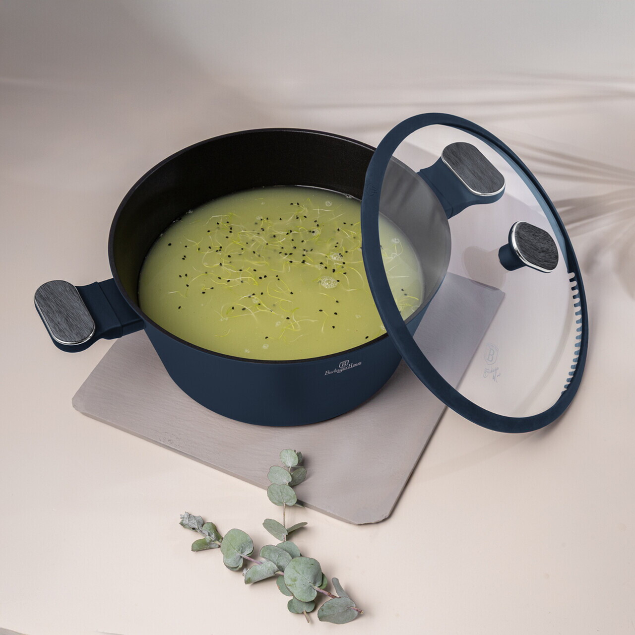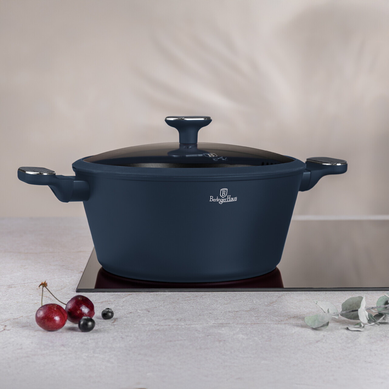 Oala cu capac Berlinger Haus, Deep Sea, 28 cm, 6.3 L, aluminiu forjat, albastru mat/gri