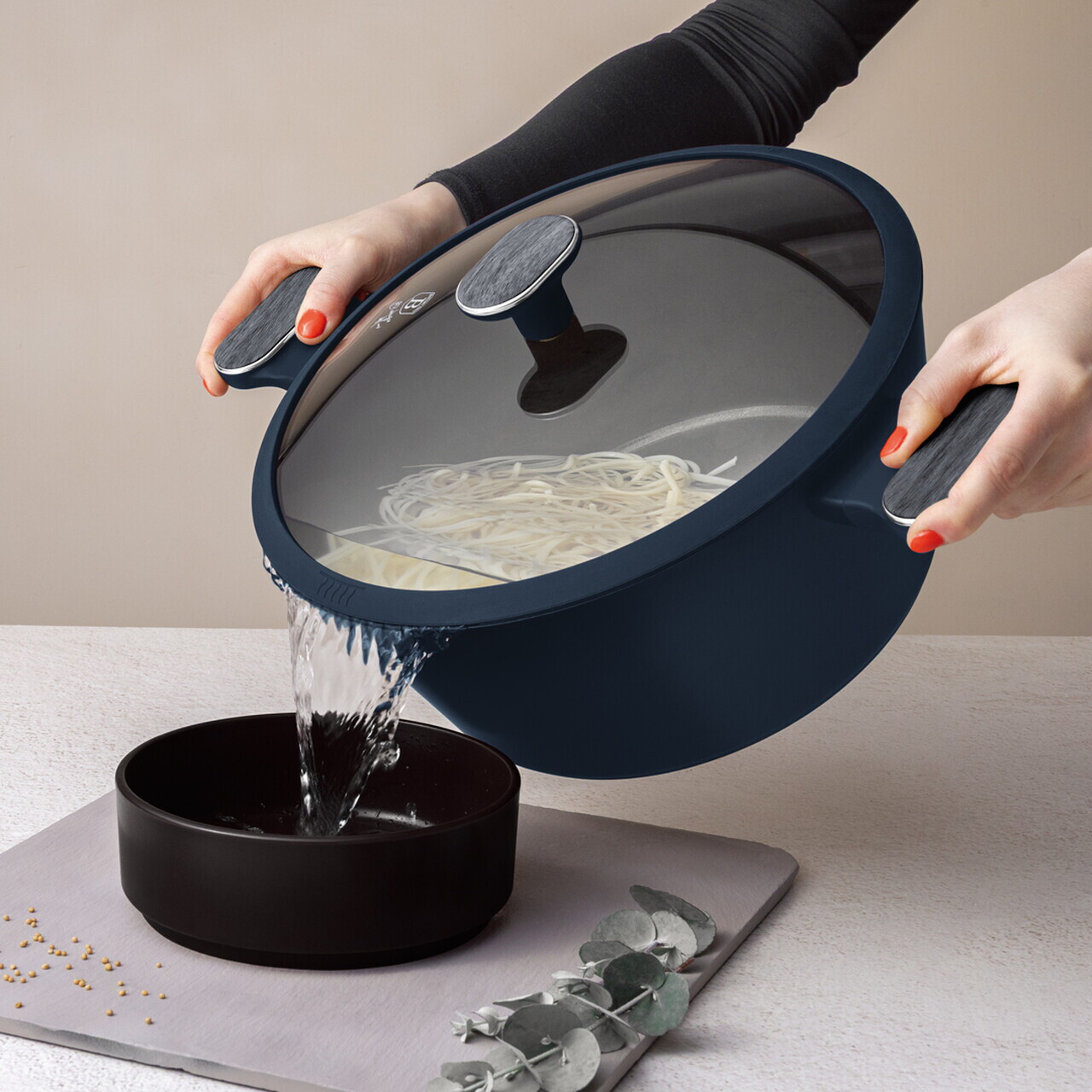 Albastru mat/Gri, Tigaie adanca 24 cm