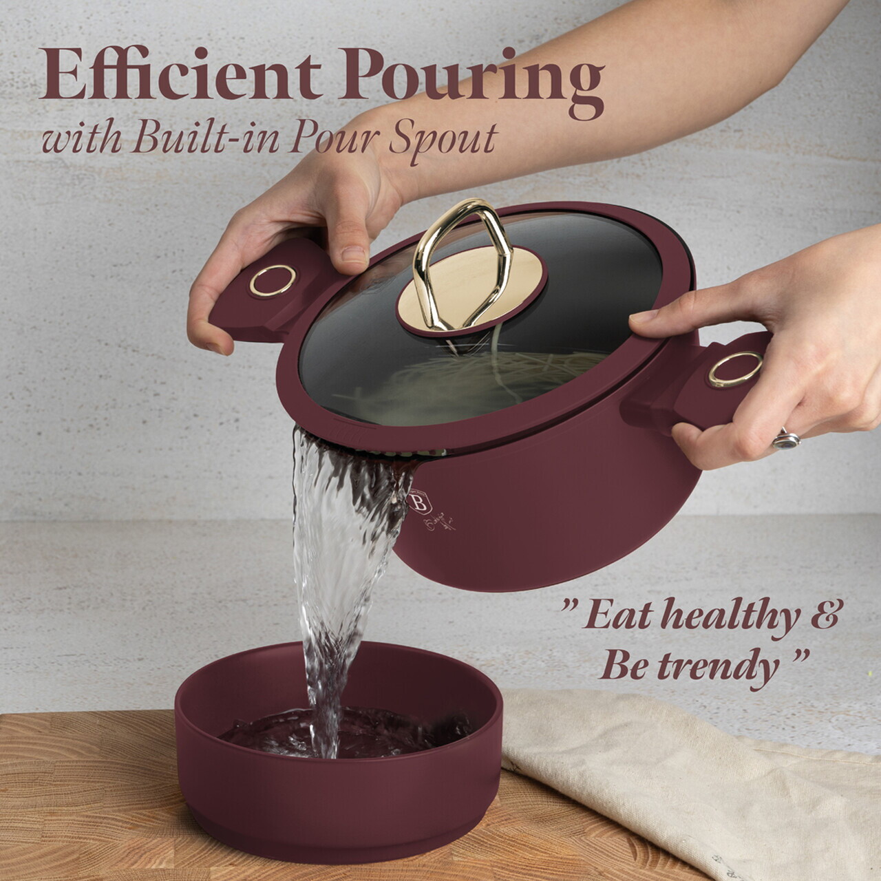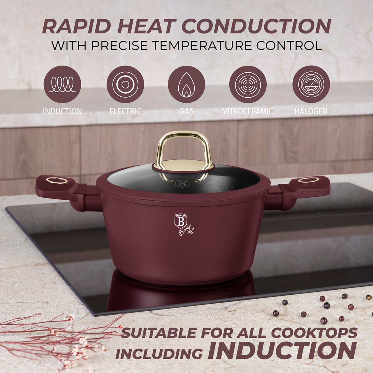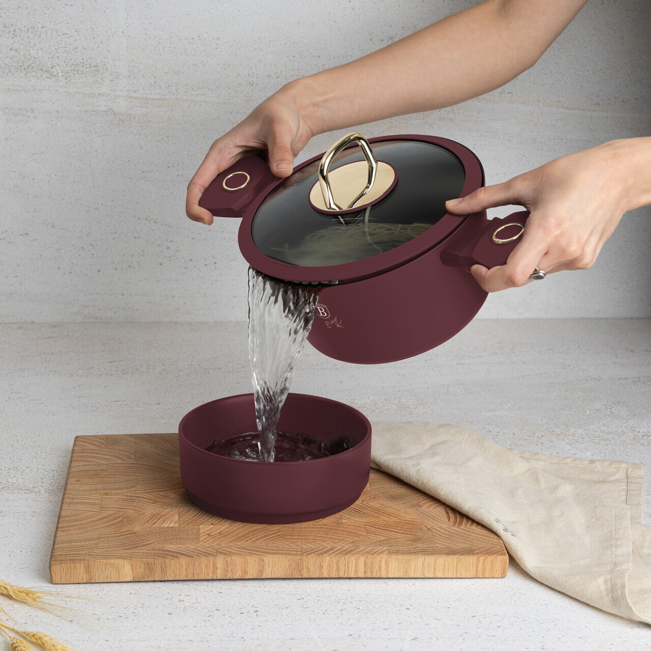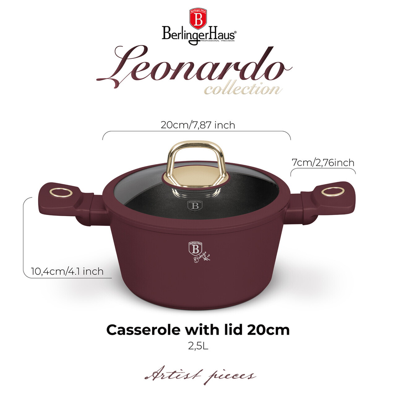 Oala cu capac Berlinger Haus, Leonardo, 20 cm, 2.5 L, aluminiu forjat, visiniu mat