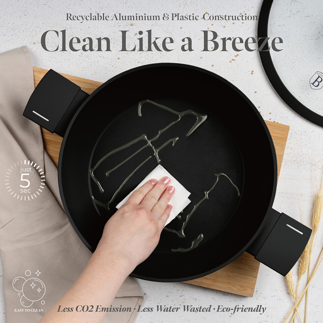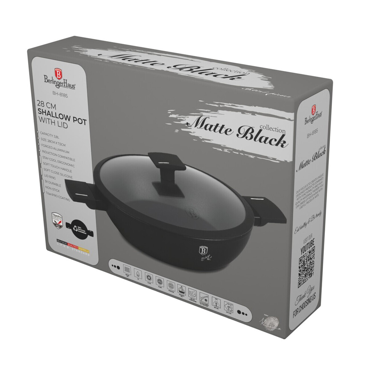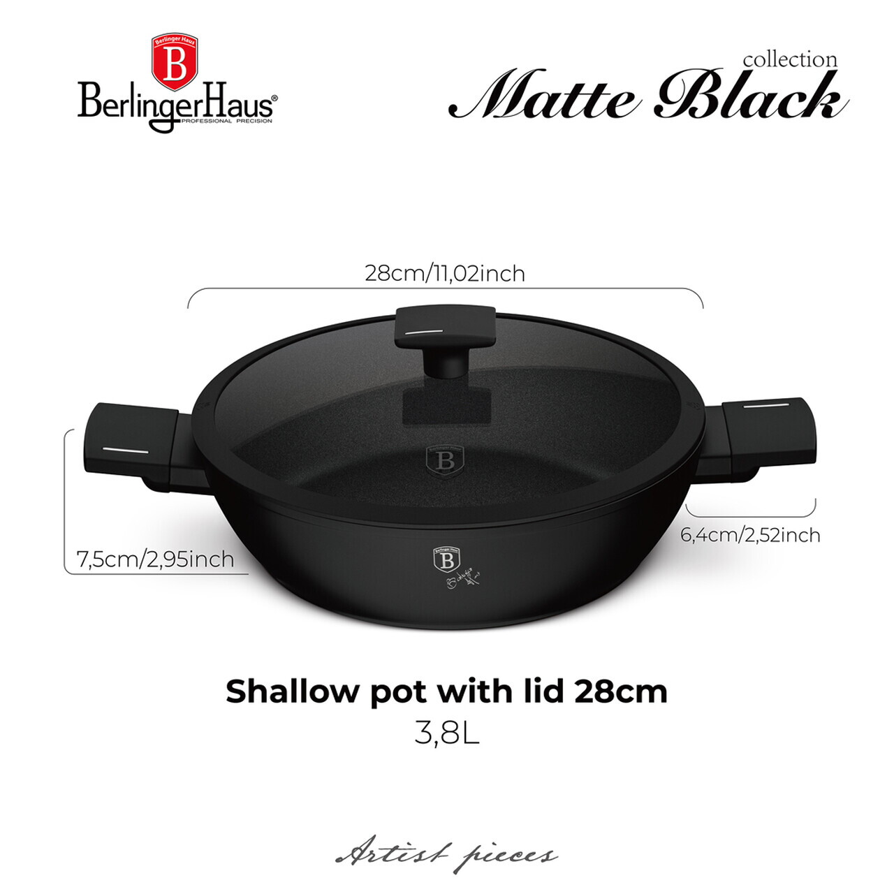 Oala cu capac Berlinger Haus, Matte Black, 28 cm, 3.8 L, aluminiu forjat, negru