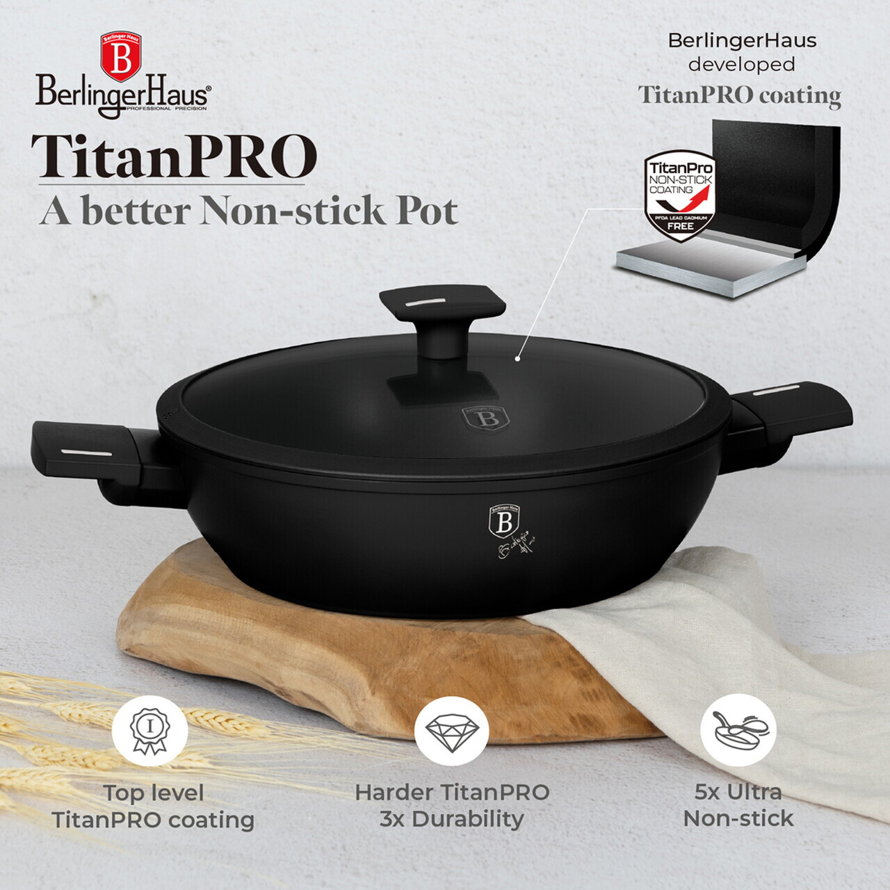 Material: aluminiu forjat cu strat antiaderent TitanPro