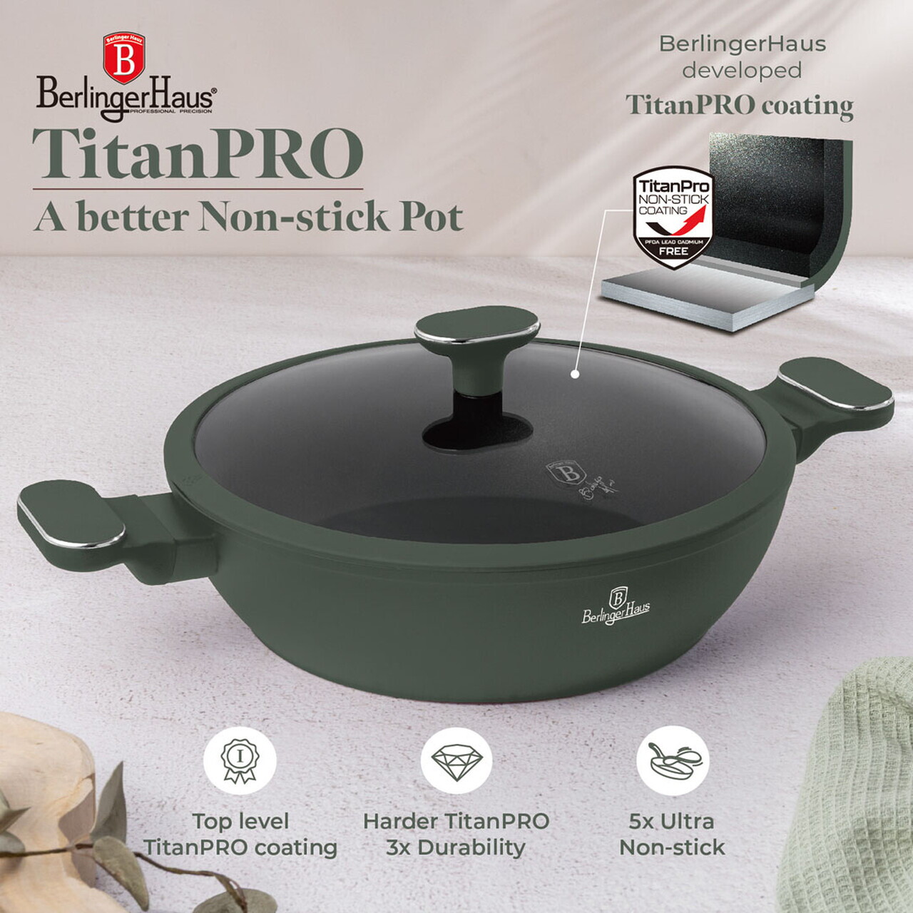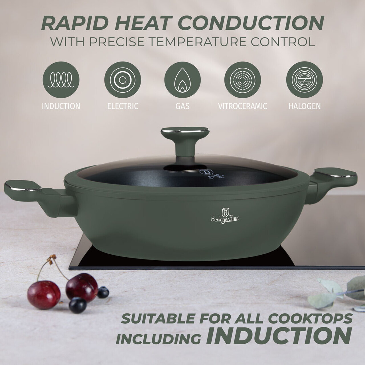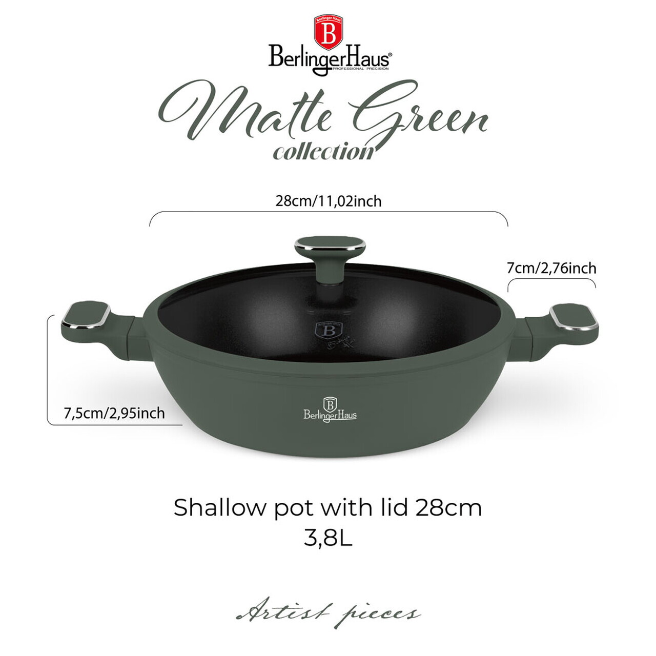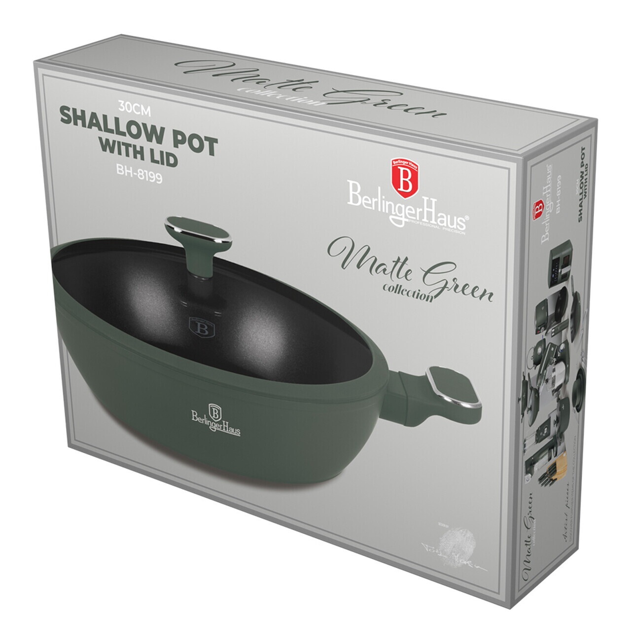 Oala cu capac Berlinger Haus, Matte Green, 30 cm, 4.5 L, aluminiu forjat, verde mat